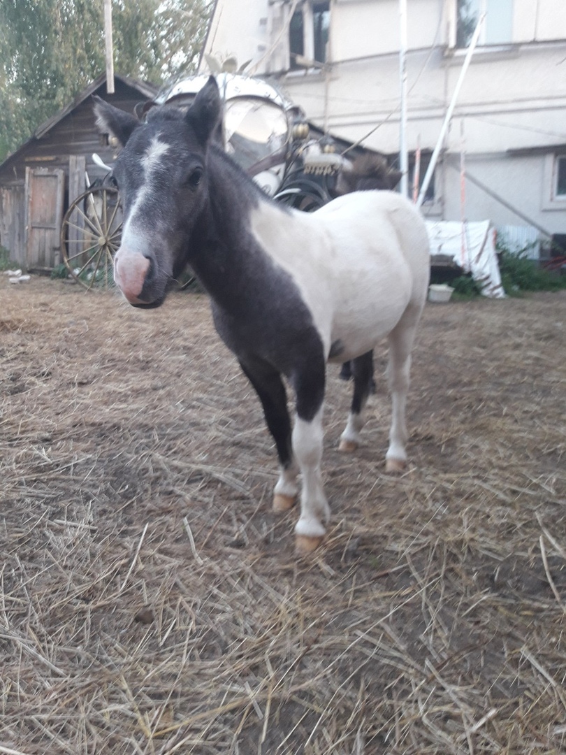 2)Доня- шетлендская пони,кобыла,(Денщик-Декада в базе)серо-пегой масти,7 лет,100см в холке, работала в прокате, ходит в упряжи и под седлом,спокойная,ходит на недоуздке,здорова.вет .паспорт