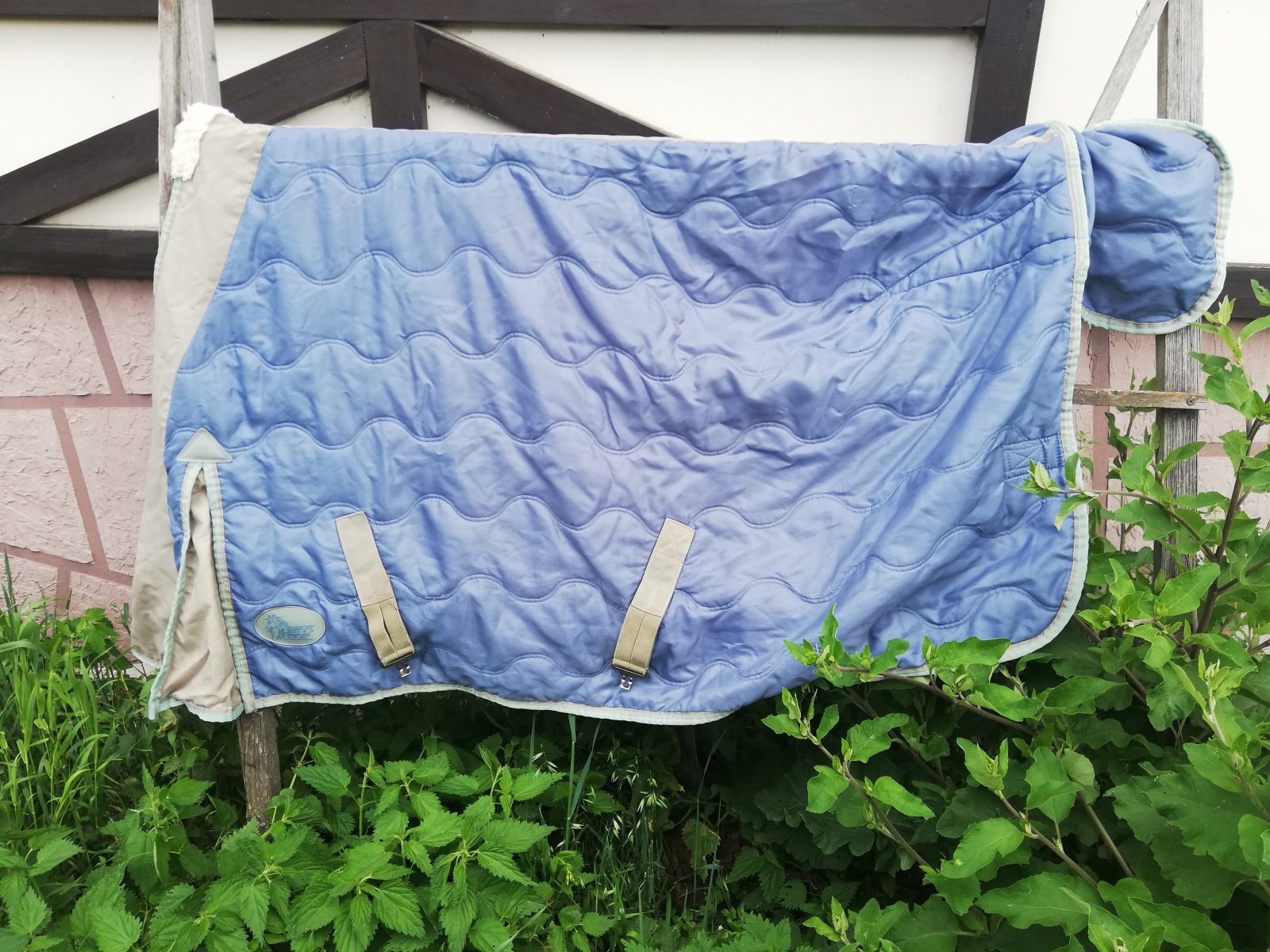 1. Утепленная попона Harry Horse, серо голубая. 130см по спине. Утеплитель синтепон, нетолстая, подойдет как денниковая. 1500руб. Есть недочет-небольшая дырочка в районе крупа. Руки не дошли зашить