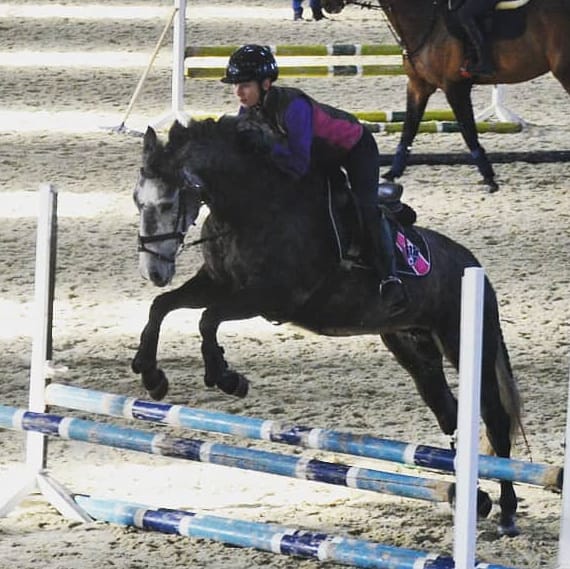 На шикарных движениях, обладает прекрасной техникой прыжка.