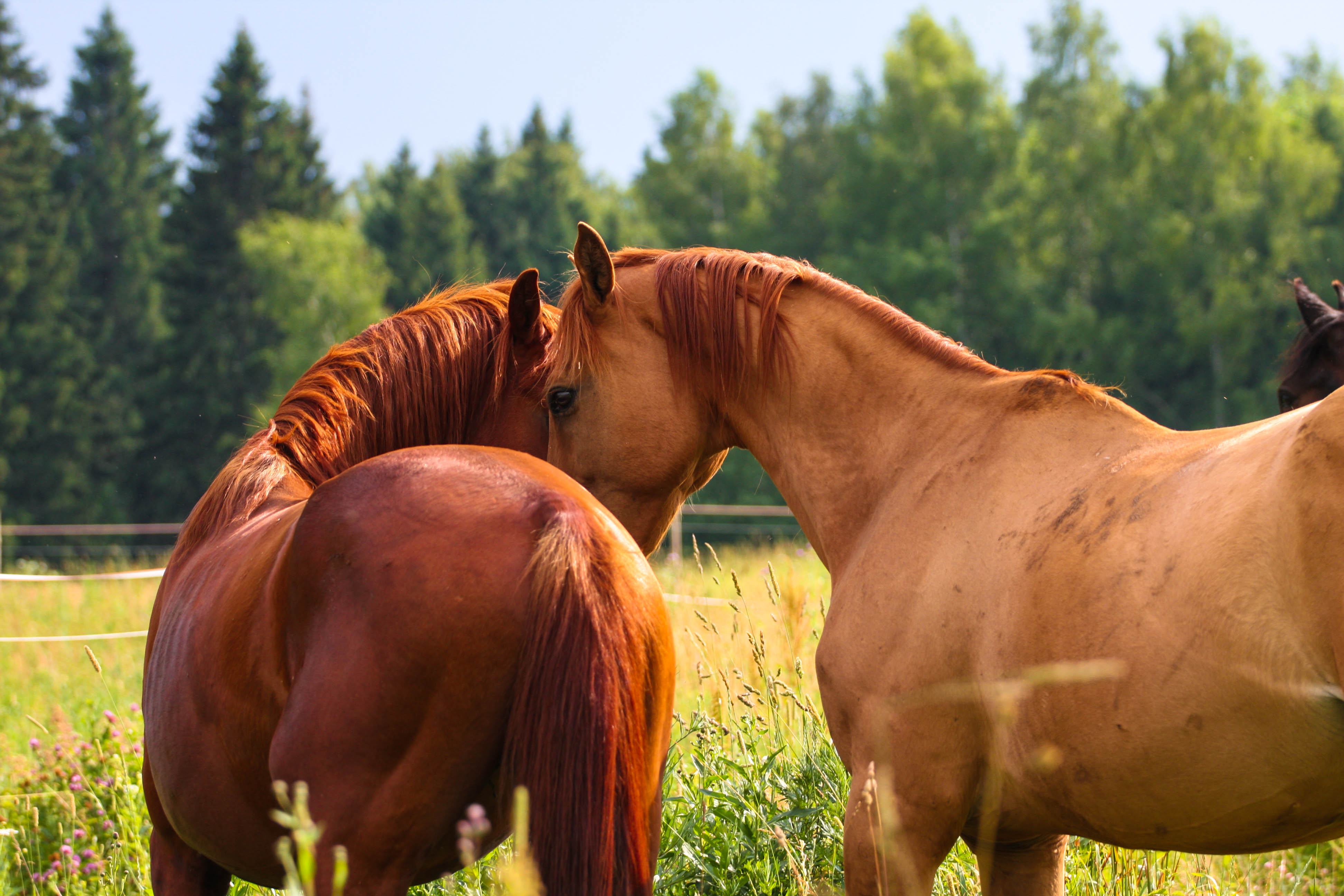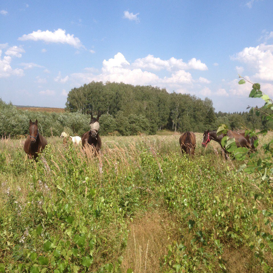 Стоим у Леры почти месяц, все очень нравится. Переехали в Хлябово из-за жары - конюшня большая, просторная и прохладная, просьба заводить коня в жаркое время с выпаса в конюшню четко выполняется (а в этом вопросе далеко не везде идут навстречу), удобно устроена мойка - зверь каждый день принимал душ для охлаждения, сено вволю и проливается, конь очень радуется большому деннику и автопоилке, выгул/выпас в больших электропастухах, которые переставляются по мере проедания травы, плац большой песчаный (грунты нам явно подходят, поскольку за пару недель ушли отеки на задах) - в общем, мы с конем всем довольны )) Жару прекрасно пережили - у меня дыхлик, быстро реагирующий на косяки в содержании, в Хлябово опять дышит как здоровый, ттт.