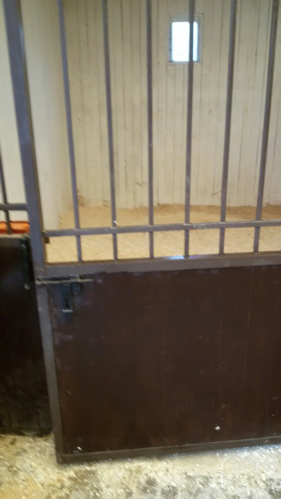 Конюшня: денники 3х4, пол бетонный, стены деревянные, оборудованы кормушками и подвесами для соли, в каждом деннике окно с стеклопакетом. Проход 4 м с противоскользящей плиткой выполненной по спецзаказу. Большой объем воздуха, хорошо проветриваемое, светлое помещение. Окно из комнаты круглосуточного. Конюшня построена в 2014 г.