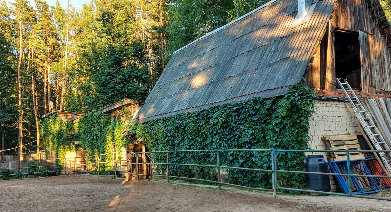 Для работы лошадей есть два плаца. Трасса в лесу.