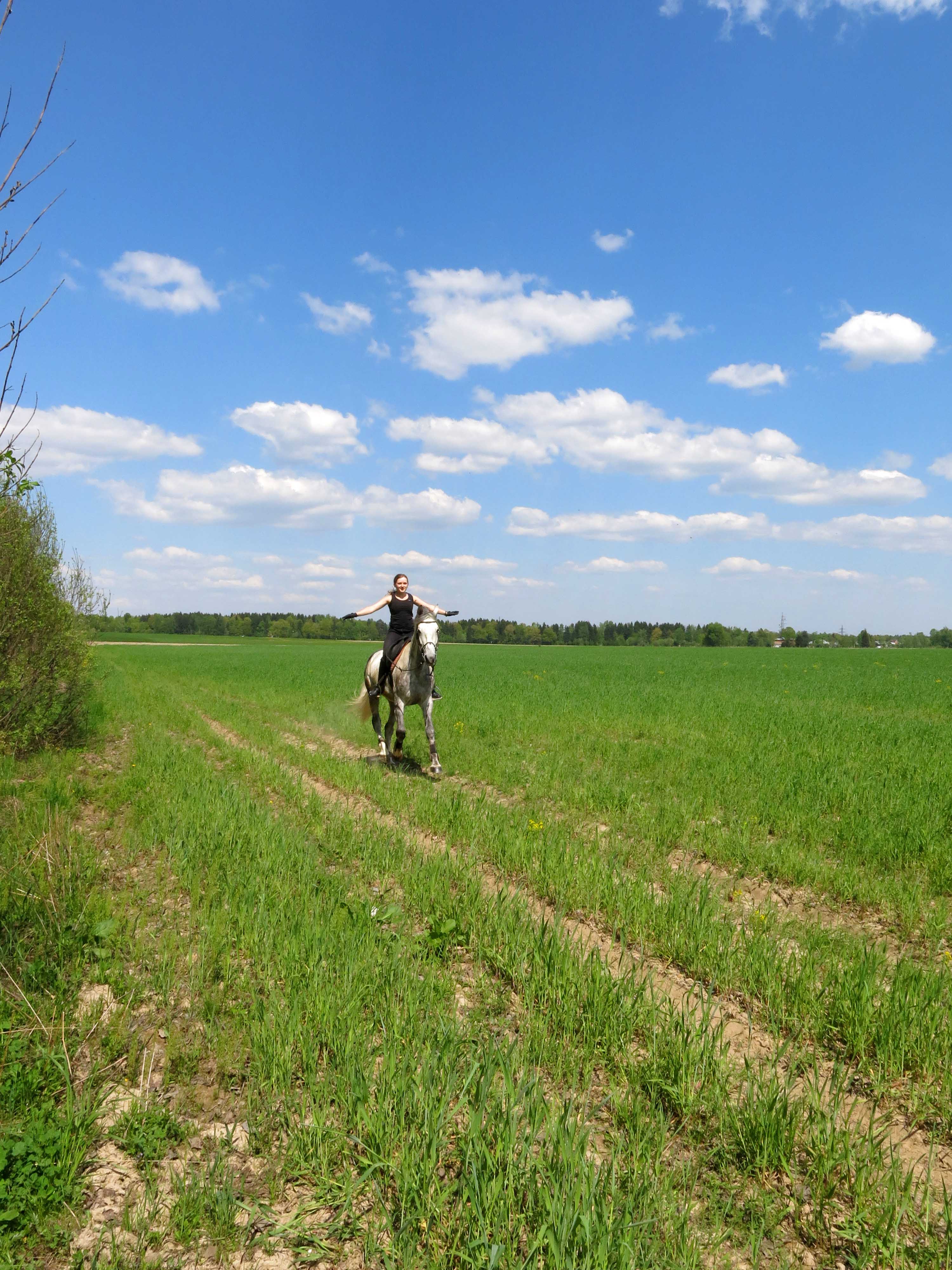 * работа наедине с лошадью (других всадников и лошадей на плацу нет),
