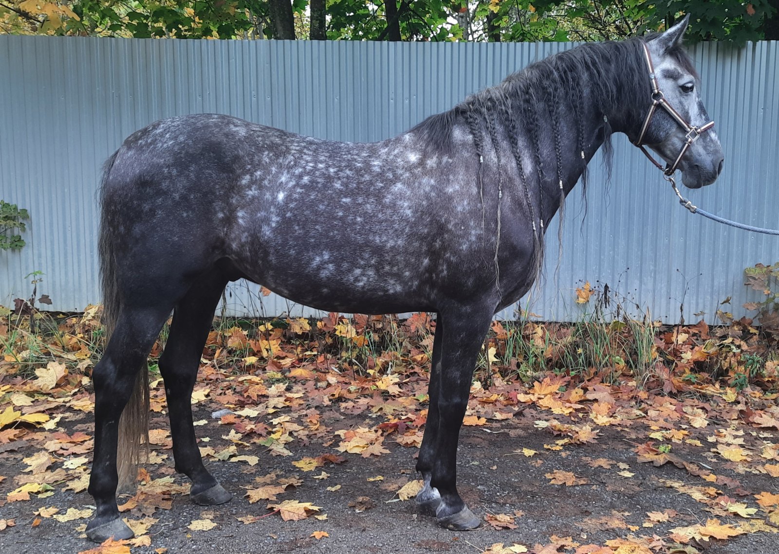 На продажу предлагается серый испанский (PRE, андалуз) мерин 2016 г.р., 165см в/х, на эффектных широких движениях. Без проблем со здоровьем. Обладатель длинной, густой гривы. Вредных привычек нет. Под седлом не играет, не свечит. Как все нормальные лошади- колется, моется, пшикается, грузится. Ничего не боится. Можно ехать в любое незнакомое место. Находится в Московской области. WhatsApp: 89164529552