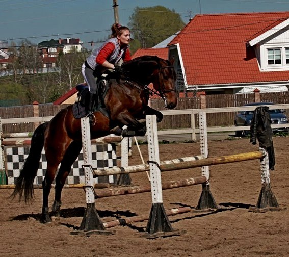 Не смотря на то что рысак, поставлен на очень мягкий и приятный галоп, знает элементы выездки уступку, принимание, пируэт, прибавка, контргалоп и тп. Едет маршруты конкур 90-100 см. , одиночки 110-120, имеет стартовый опыт. Прекрасный конь для обучения даже «с нуля» и продолжения спортивной карьеры. Слышит всадника, держит баланс, мягкоуздный, берет на спину и не трясет. Отличный запас прыжка, превосходная техника. Без проблем по здоровью.