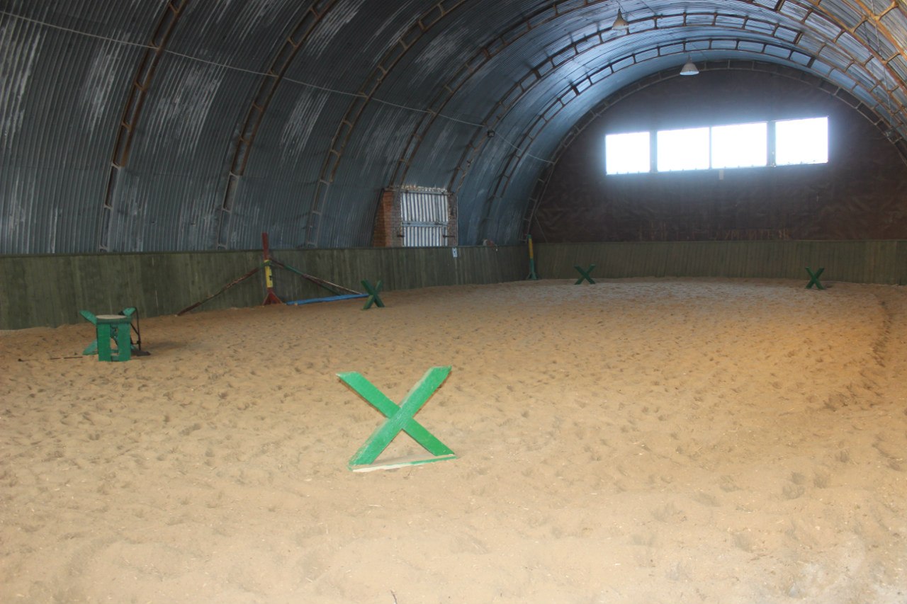 Крытый манеж ( грунт: песок + щепа, под песком находится глина) 20х30, можно работать в любую погоду;