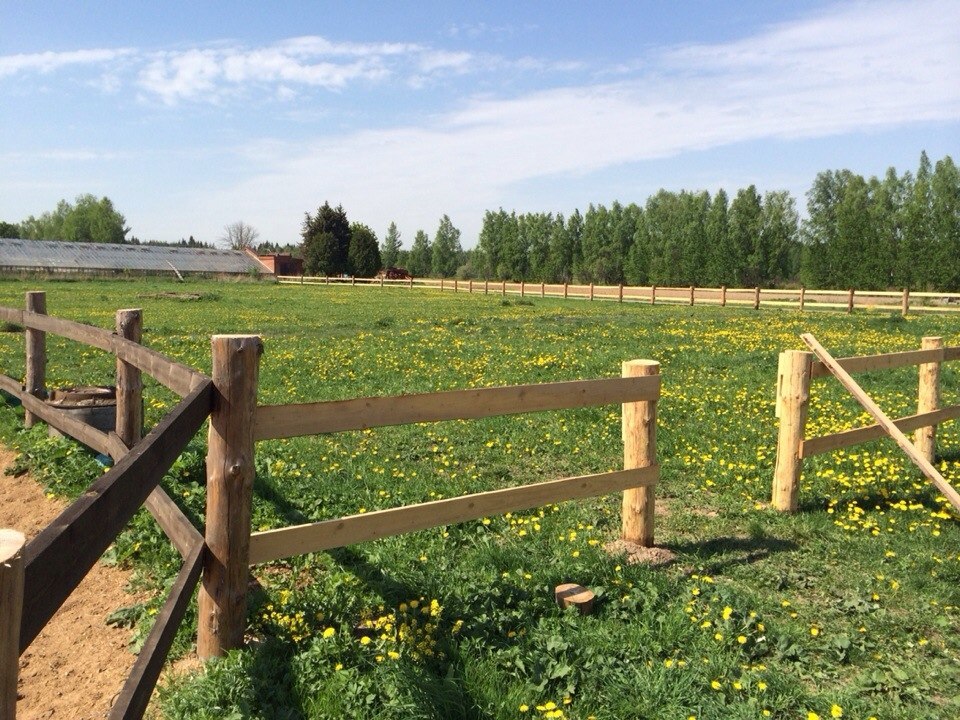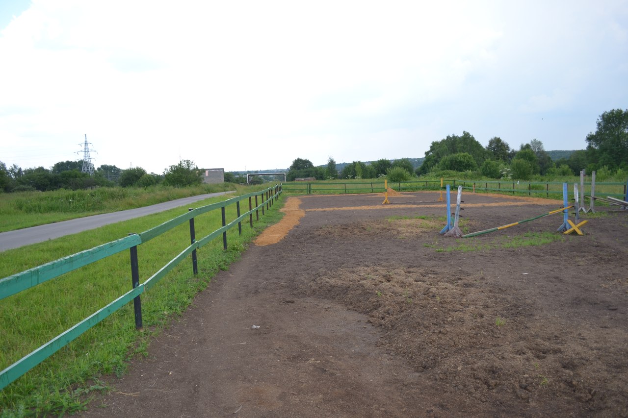 Множество левад под выпас, одна из левад с навесом (зимой лошади гуляют в попонах). Выгул в леваде входит в стоимость постоя.