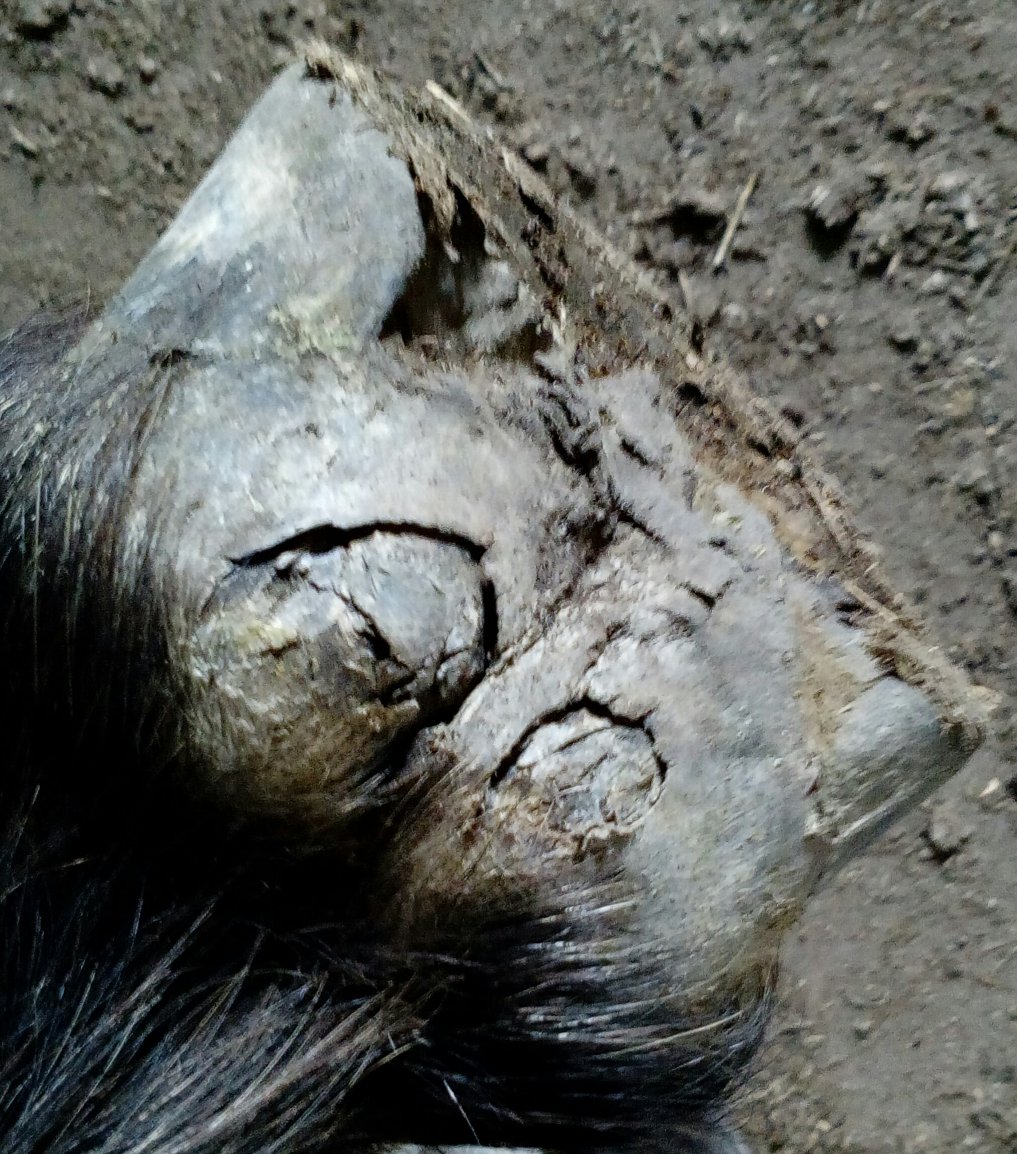 Не пойму что с ногой лошади.Не давно на прогулке после пробежки начал резко храмать.До этого не не разу не прихрамывал. На левой стороне пятки была рана,и кровь. Подумала что порез,мазала заживляющими мязями,поставили антибиотик,вроде стало проходить,но несколько дней назад на правой стороне появилась такая же штука и лошадь стала хромать еще сильнее.Я понятия не имею что это и как это лечить. Ветеринары у нас только по кошкам и собакам,просто разводят руками.нужна ваша помощь. Заранее спасибо .
