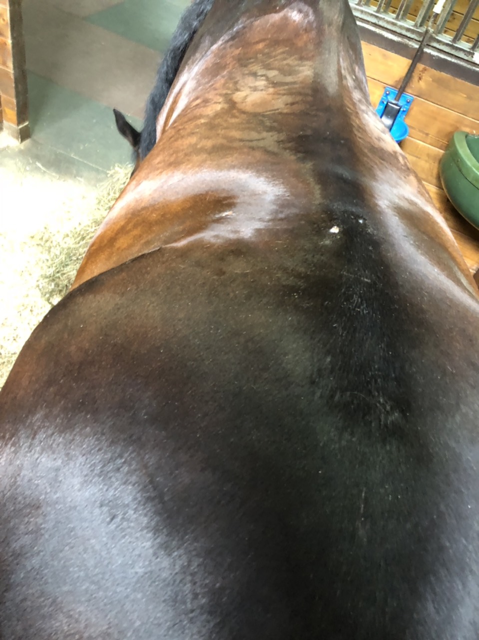 Обычные содранные ранки по моему, если лошадь гуляет не одна то это нормально. Кто-то зацепил зубами в играх/почесухах/драке. Если гуляет одна, то проверьте место выгула на предметы о которые можно так ободраться (ветки, доски, клочки забора и прочее)