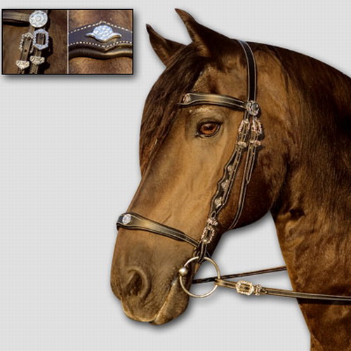 В пересчете на рубли за 2200 рублей (была скидка 50%) получила уздечку из шикарной кожи, где все пряжки сделаны в виде подковок со стразами. У нас таких нет и никогда в магазинах не было. Я вообще-то к таким вещам равнодушна, но тут не устояла. В следующем заказе купила вторую такую же. :lol:
