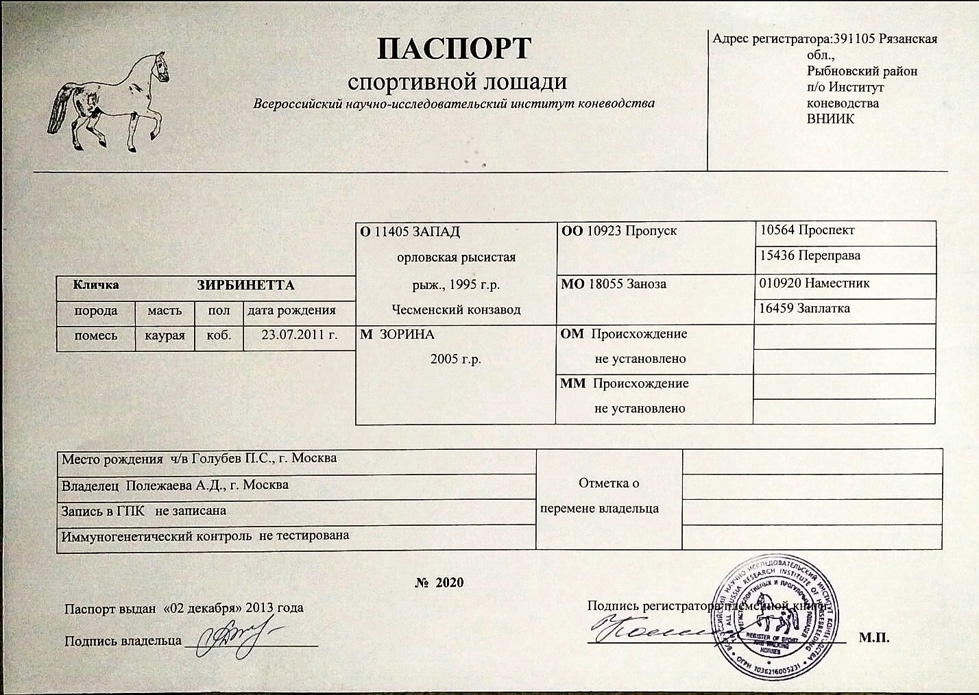 Отец орловский рысак, мать калмыцкая порода.