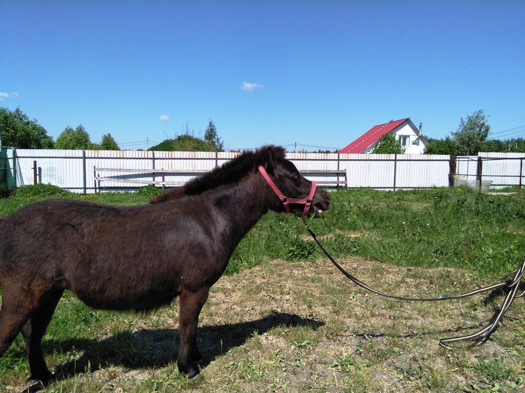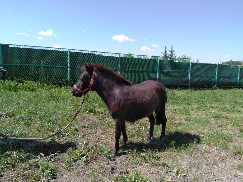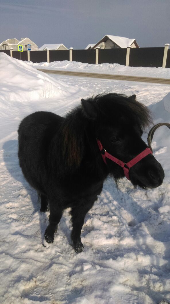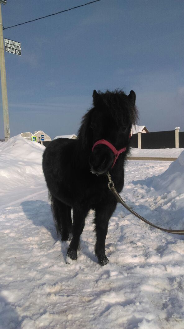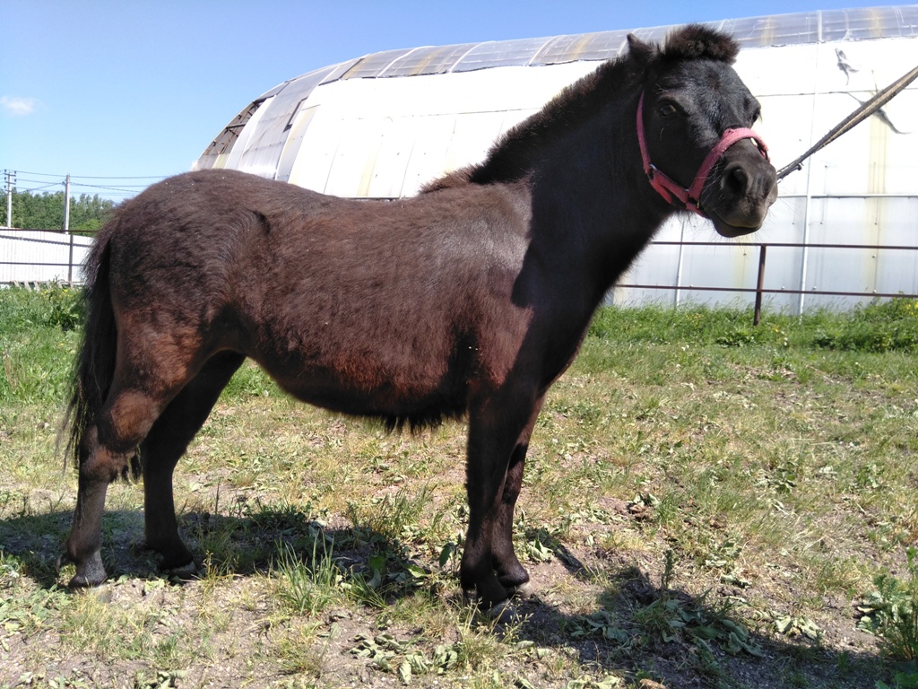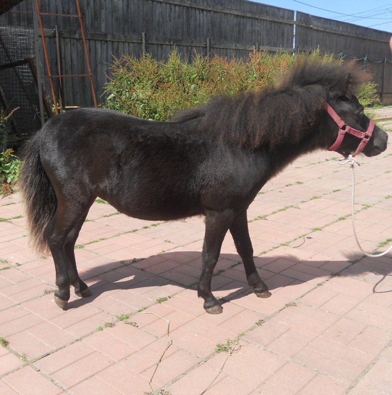 100% AMHA – Американская миниатюрная лошадь, возраст полтора года, вороная, очень ручная, дружелюбная и игривая, бегает следом за человеком, как собачка, прекрасный компаньон, происходит от очень именитых родителей, уникальные крови;