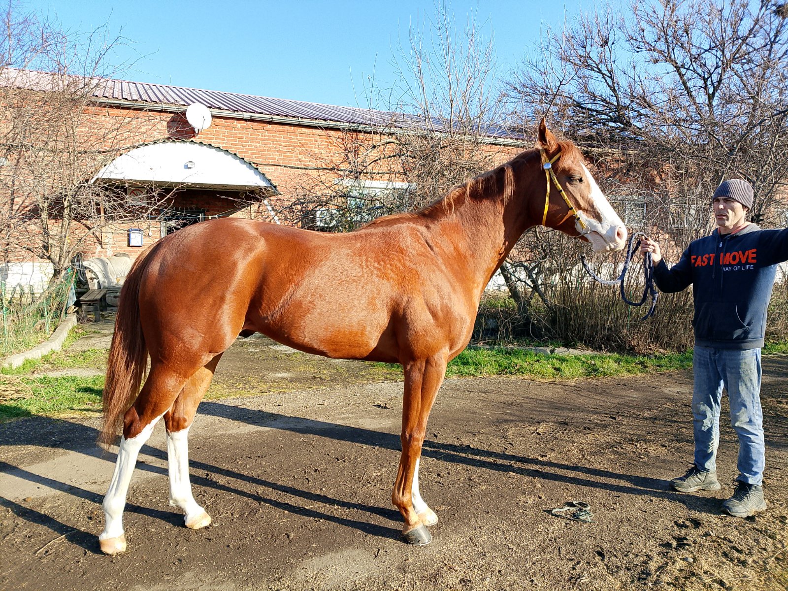 Продается скаковой чкв жеребец Талер 2023г.р. от Стронг Блоу USA и Телиции RUS, отец матери Сиро USA. Начинающий ипподромный боец, три старта три призовых места. 165-190-19, целый, в активном скаковом тренинге на Краснодарском ипподроме. Поздний. Может быть как спринтер и как стайер. Прекрасно сложен. Характер уравновешенный. Цена и видео по запросу 89034385939. Всё мессенджеры.