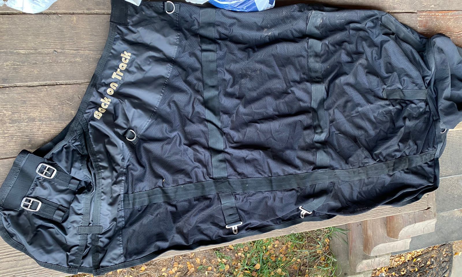 Зимняя попона Finn Tack 135, можно в денник, можно на улицу, не промокает. Состояние: носили, и видно на фото - 6000р.