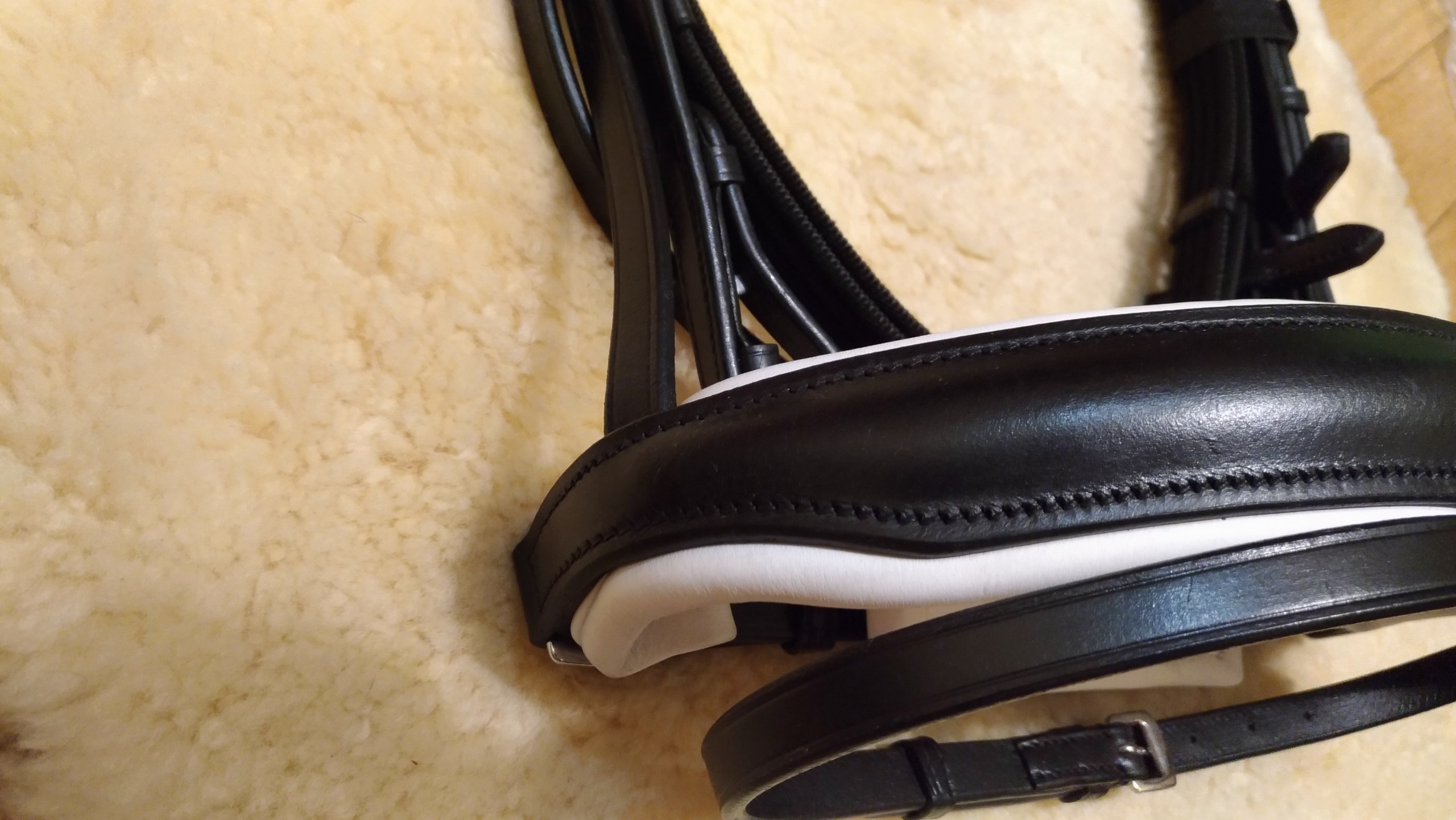 - Уздечка с круглыми ремнями и белой подложкой, фирмы Bonjour, Toto! (фактически новая) размер full с поводом - 5000р