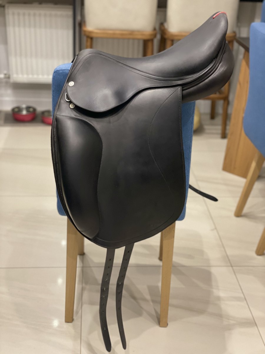 Седло отличается от классики более свободной посадкой. Прекрасный вариант для молодых лошадей, а также для лошадей с короткой спиной. хорошо ляжет на пони. Подойдет некрупному всаднику,ребенку.