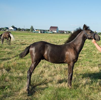 2 Жеребчик Кимбер орловский с 1/4 текинской крови, рожден в марте 2018 от орловского Бонжура (Уклон - Блеклая) и Кишуоки ( ахал. Тебриз - орл. Капелька), базовая масть пепельно-вороная, но будет серым. Жеребята, крупные, нарядные, хорошо развитые, костистые. Пока растут под матерями на сеяном пастбище в 85 га. Оповожены, расчищаются. Абсолютно ручные, ничего не боятся. Можно оформить документы ВНИИК