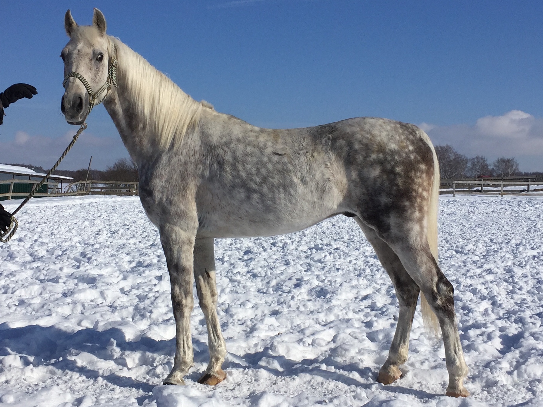 Работает под седлом, на корде, в руках,на вожжах;открытые и закрытые площадки, а также природный грунт включены в повседневный тренинг. Гуляет много,в коллективе,в большой травяной леваде,неконфликтен.