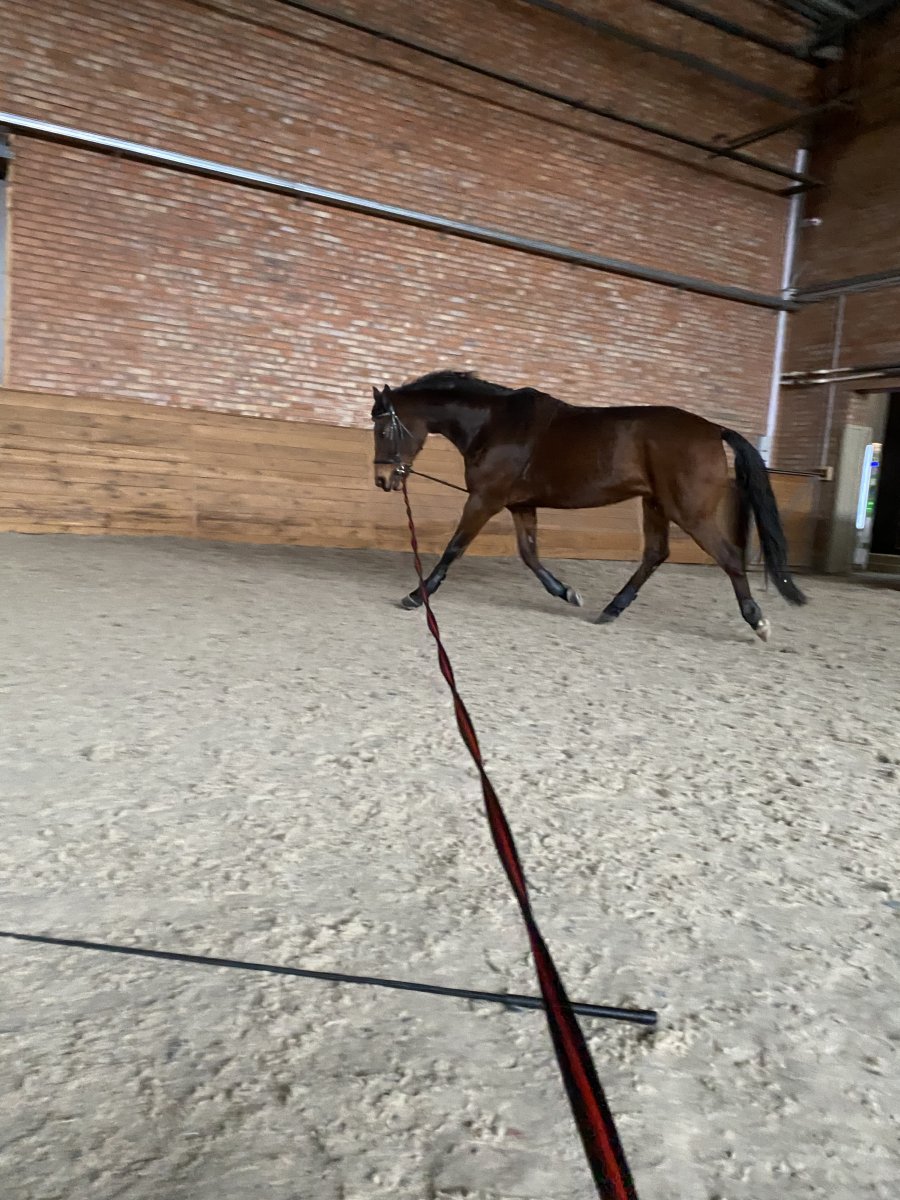 Работает в выездке(манежная езда,кавалетти)Ходит жерди на рыси и галопе.
