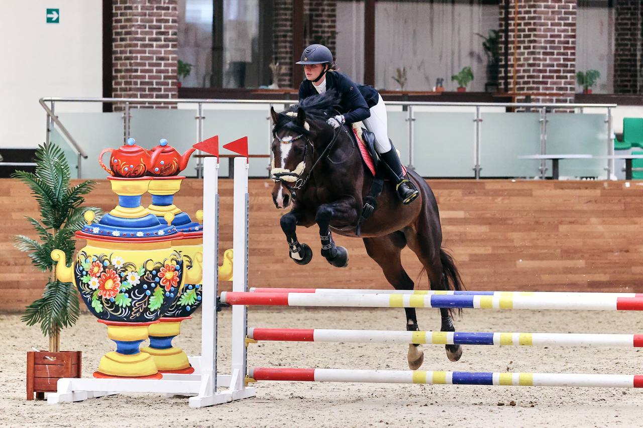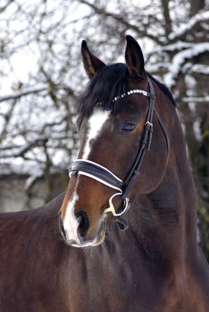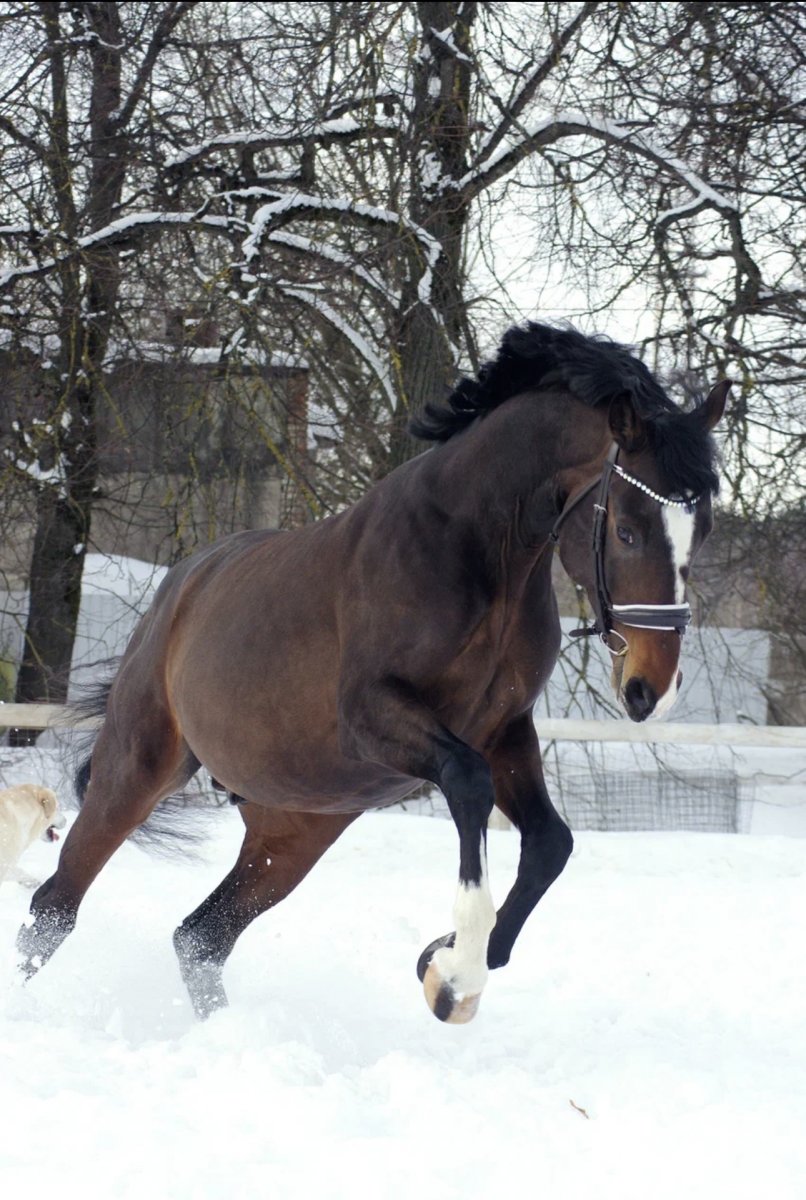 - Напрыган на свободе до 140см , под верхом до 110см, знает уступки, менку. На красивых, летящих движениях, будет интересен как в конкур так и выездку.