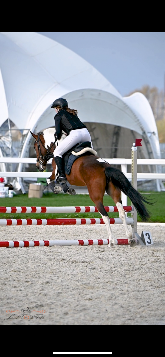 Кобыла активная, в конкур на соревнования совсем под нулевого наверно не подойдет, ( в силу возраста. Прыгает с удовольствием и при грамотной работе перспектива 110 см точно есть, без прыжков подойдет и под нулевого
