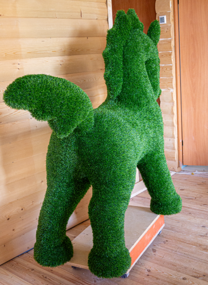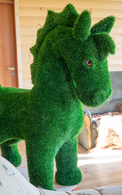 Замечательная фигура из искусственного газона. Очень прочная (стеклопластик), можно посадить сверху 60 кг. Для фотосессий и привлечения внимания - просто огонь! Можно по заказу выполнить в любом другом цвете.