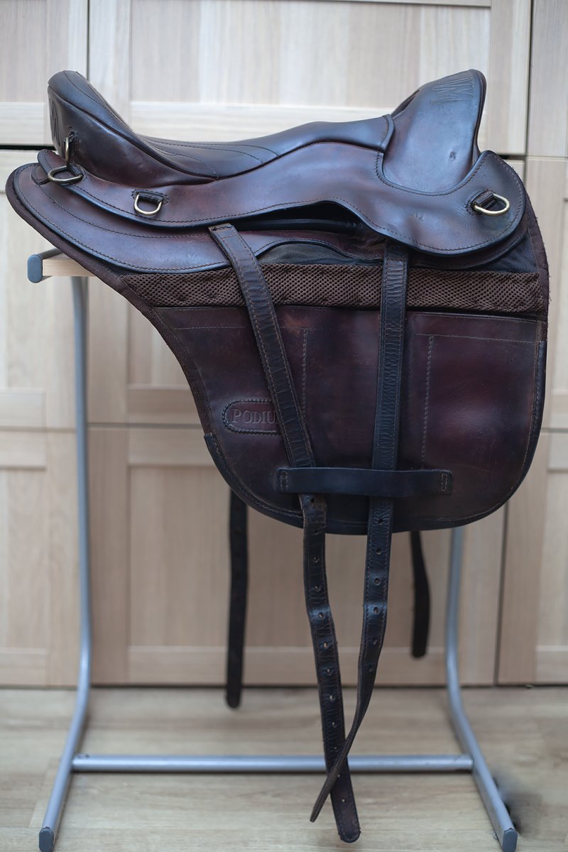 Продам седло итальянской марки Podium (Подиум). Идеально для пробегов и долгих прогулок. Очень легкое, из натуральной качественной кожи. В коричневом (шоколадном) цвете. Размер по всаднику 16 (западный) - по европейским меркам 16,5. Размер по лошади L (large) - на круглые спины и/или достаточно широкие плечи (33-34). Б/У. Привезено из Великобритании. Имеет следы эксплуатации, которые никак не влияют на качество езды и использования седла в целом. В хорошем состоянии. Цена 68тыс.руб. Сделаю скидку при покупке без примерки.