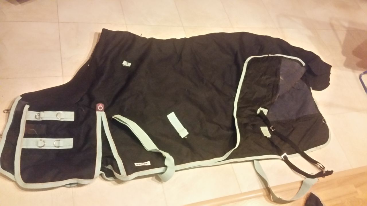 Внутри флис+наполнитель (по ощущениям грамм 150-200).Попона довольно теплая,но не толстый пуховик.