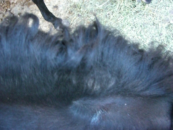 Вчера обнаружила у коня вот такую проплешину в гриве: