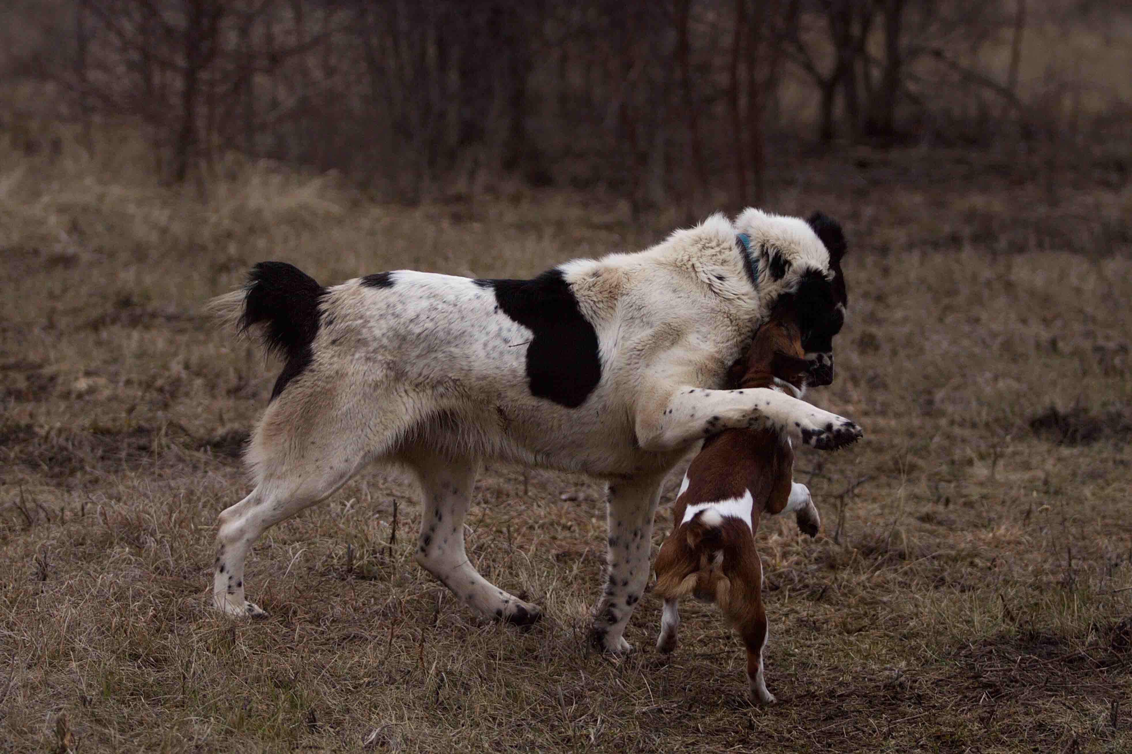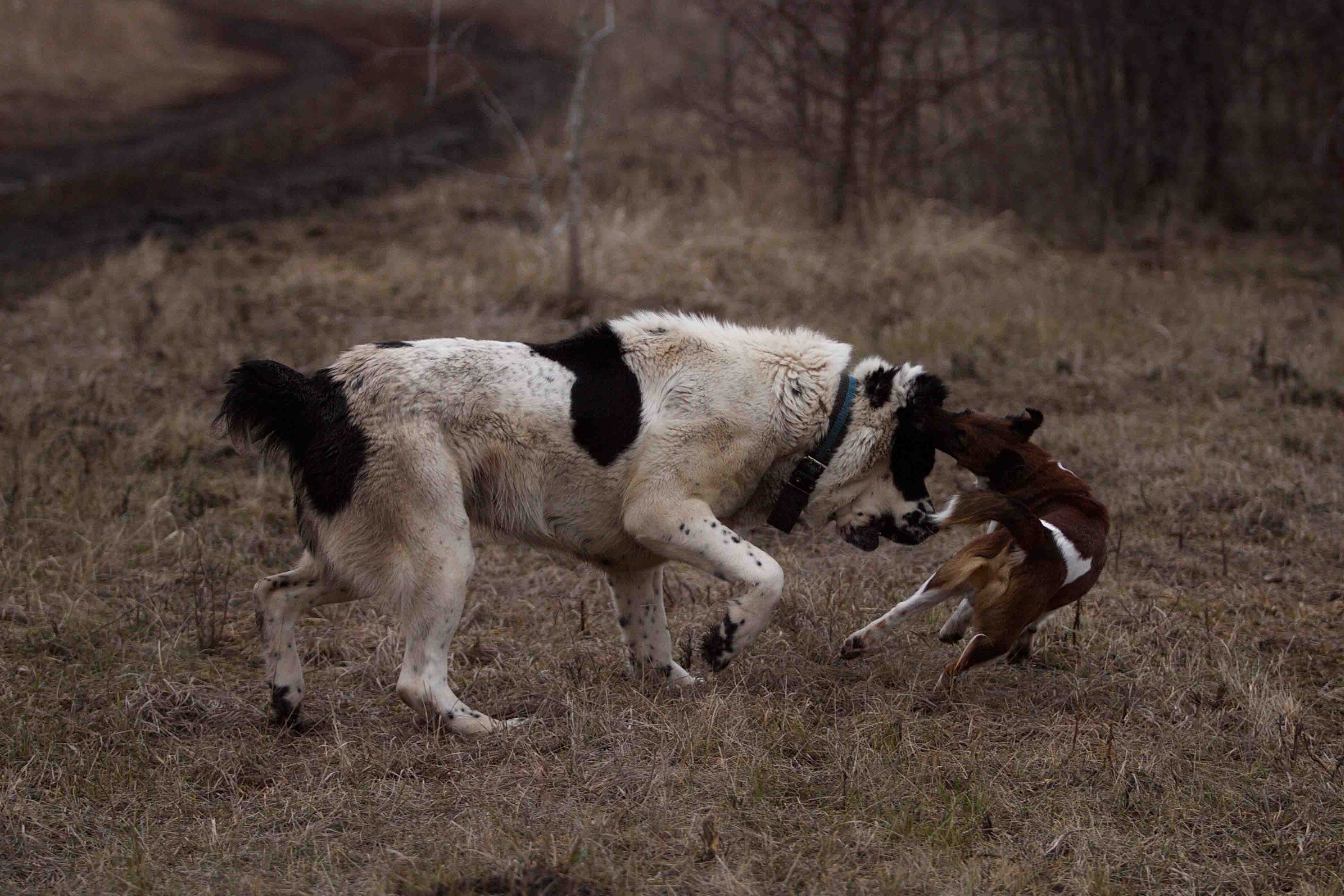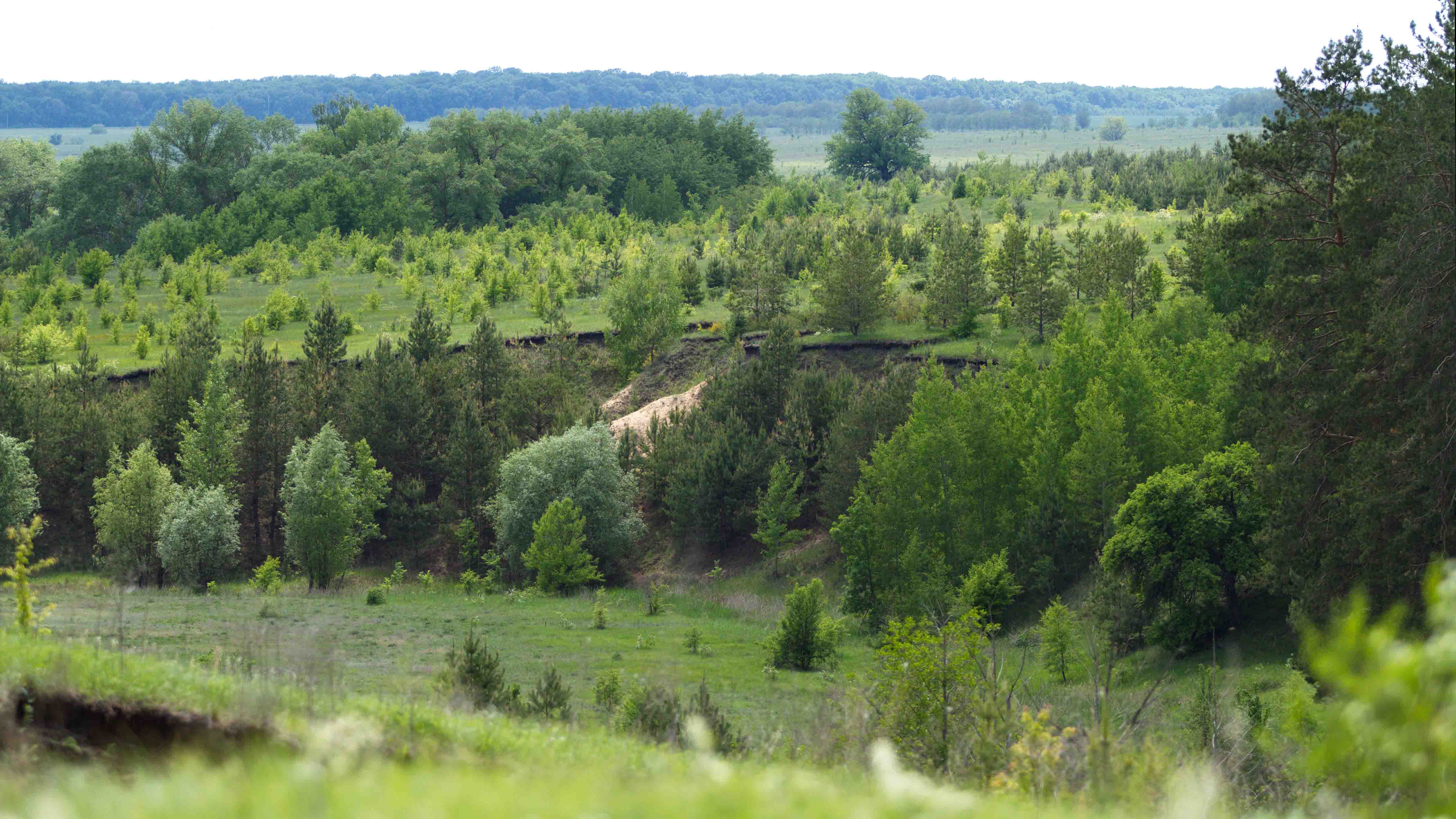 Как не удивительно, но трава за зиму не смылась, а с осени осталась желтенькой... бурое пятно клевера, липа стоит в красных облаках прошлогоднего прироста, чуть дальше ветла в таком же, но желто-охряном облаке....чавк-чавк-чавк-хрюк....пробежала мимо рыжая-нечесеная, а за ней мелкий пятнистый....из под копыт полетели черные комья мокрой земли и в дерне остались следы....подняла глаза - охра, кирписный, серо-бурый, красный, желтый и черный - пятнами лежат на осыпавшемя в овраг крутом склоне напротив.... впереди обрыв, за него цепляются и по нему рассыпаны лилово-багряные дички груш....иду вдоль, большой испалин с серо-марморной корой, а под ним его отпрыски еще черные или сизые от лишайника.....внизу дикие яблони, они....они голубые их ветви со всех сторон охвачены лишайником и тот кажется светятся в тумане черных ветвей, дальше снова древесные облака...от карминного до темного пурпура, от грязно-желтого до яркой, почти солнечной охры и фон : стоящие в тумане над рекой серебристые тополя зеленовато-серого цвета...на небе низкие, рваные, тихие, но светлые облака...кажется они задевают за верхние ветви исполина....а в дали на севере туман пушистым белым одеялом спотзает с леса на влажное черное перепаханное поле и движется ко мне....а под ногамии прошлогодняя ветошь, бадылки и салатно-, болотно-зеленый свеженький мох на черной земле среди следов....