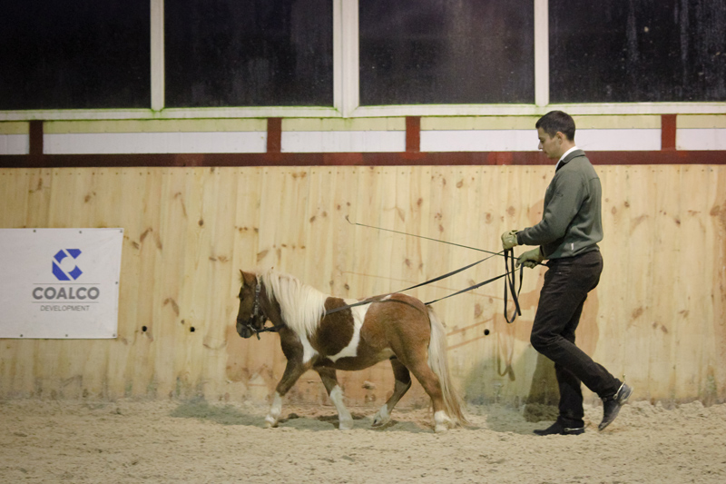 А на каком уровне? Я держала в районе холки, очень неудобно, хоть лошадь и невысокая, но рука всё равно быстро затекает, и лошадь не переносит напряжения в руках.