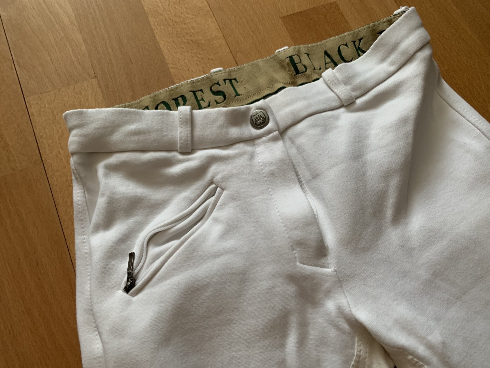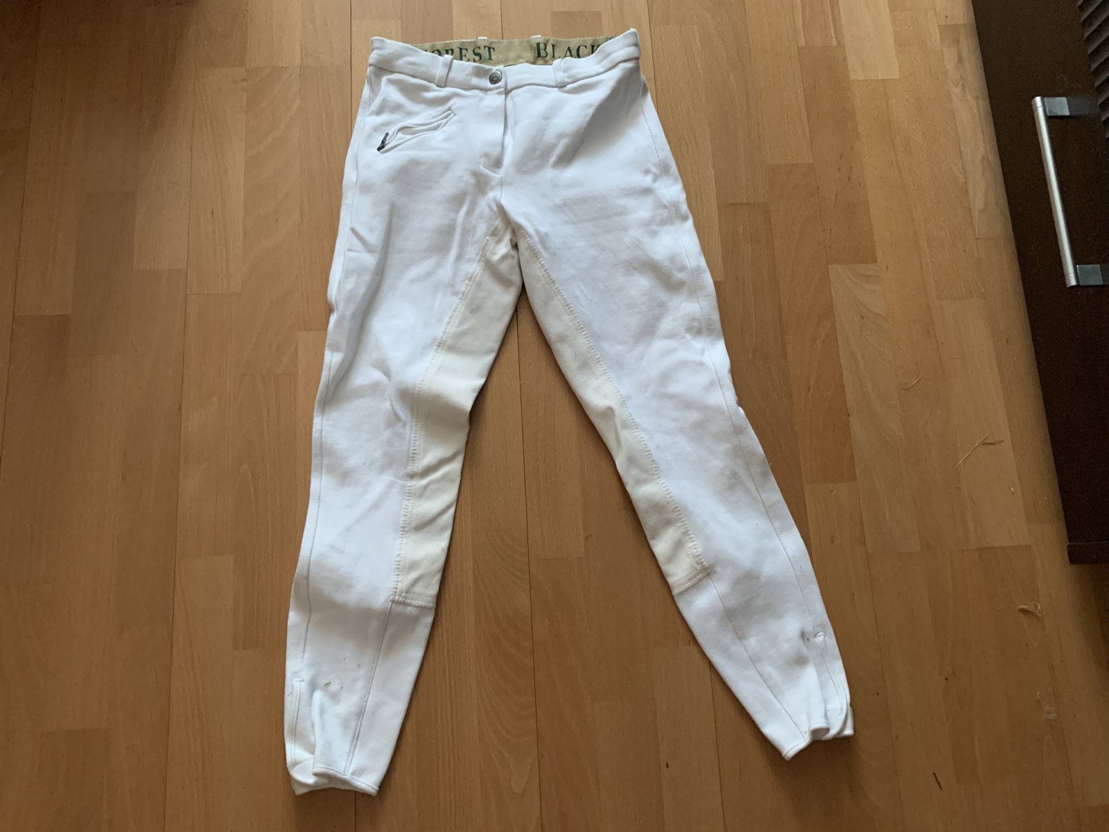 1. Редингот чёрный 44 размера, мало б/у, фирму не помню. Пуговицы интересные. Из дефектов - зацепка на рукаве, которая была при покупке - 3000 руб. 2. Новые белые бриджи Loesdau, 42-44 размер - 3000 руб.