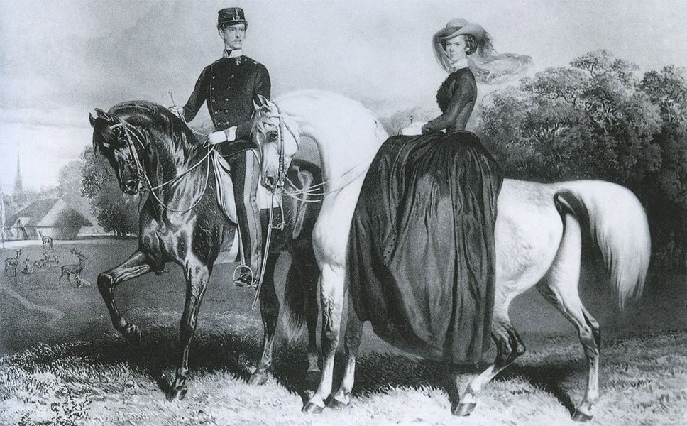 А на счет безопасности не знаю я, не пробовала никогда, но, по-моему, это все красиво, но не практично. Поэтому заядлые охотницы в мужское платье переодевались, если им хотелось самим зверя погонять. Хотя случаи скорее вопиющие. Дама была укрошением таких мероприятий и скакала всегда в сопровождении мужчин, и обязательно мужчина должен был быть со стороны... где нет ноги :roll: (каряво сказала, да? :lol: ), это, значит, чтобы падать кавалеру наруки, если что. У Филлиса есть целая глава по дамской езде, и хорошо все описано, там не дохнуть не продохнуть самой нельзя было.