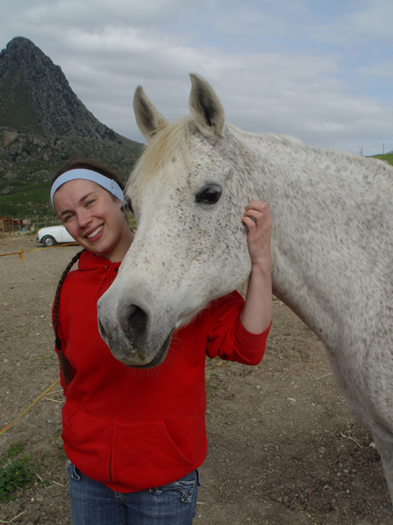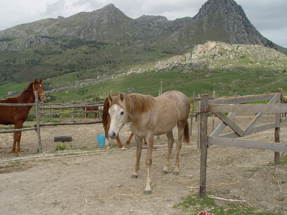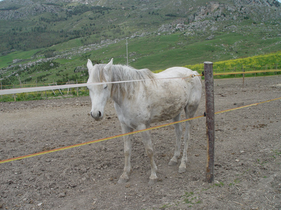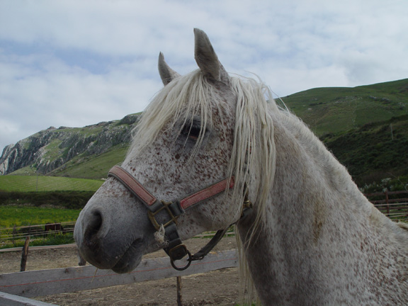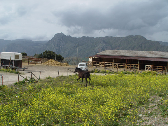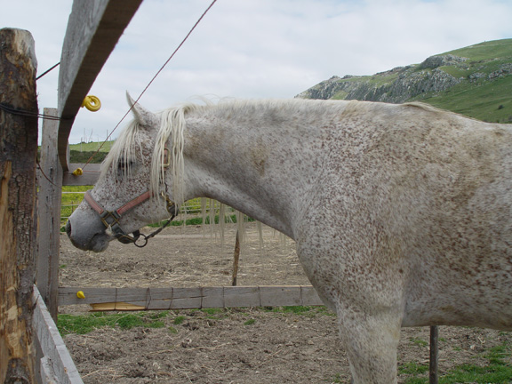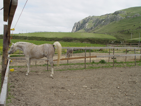 Но всё равно позанимались маленько. От бича у груди теперь осаживаем хорошо, но я всё равно не нажимаю - так пару шагов и баста. Буду потихоньку подключать сюда йо-йо, посмотрим, что получится. Закончили занятие как всегда упражнением "вон морковка!", ничего с удовольствием более менее. Зато как увидела у мужа коврик в руках , то сразу вся встрепенулась, гарцевать аж стала. У нас вместо седла есть большой персидский коврик, который я к меховушке пришпандорила, и на смену облегчённый вариант - коврик рогожкой. Последние дни они каждое утро катаются, вот она и ожевилась: "О! Сейчас опять пробег начнётся!". Но нет, пошли, голубушка, домой сено есть. Муж предложил подняться с ней наверх и зайти в гости на конеферму арабов, но я сказала: "Так мы её за одно и покроем. А вдруг эта её хондра и в правду охота". Оставили дома, а сами поднялись на гору на машине. Ферма немного поизносилась с того момента, как я последний раз там была, и их основного сокровища, вороного жеребца, не было, сказали, на заработках в другом городе :D . Вот фотоотчёт.