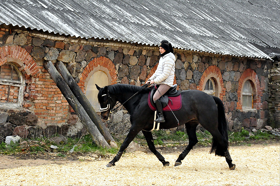 У коня было 3 выходных, а потом приехала Маша и мы сразу пошли тренить)