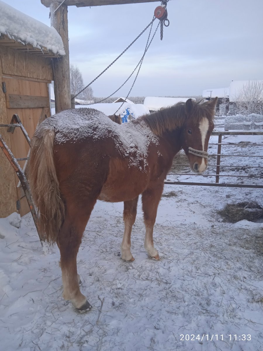 Продаётся чистопородная кобыла русский тяжеловоз,д.р.17.04.2023г.темно рыжей масти, спокойная.Выгул весь световой день.Родители с плем паспортом.