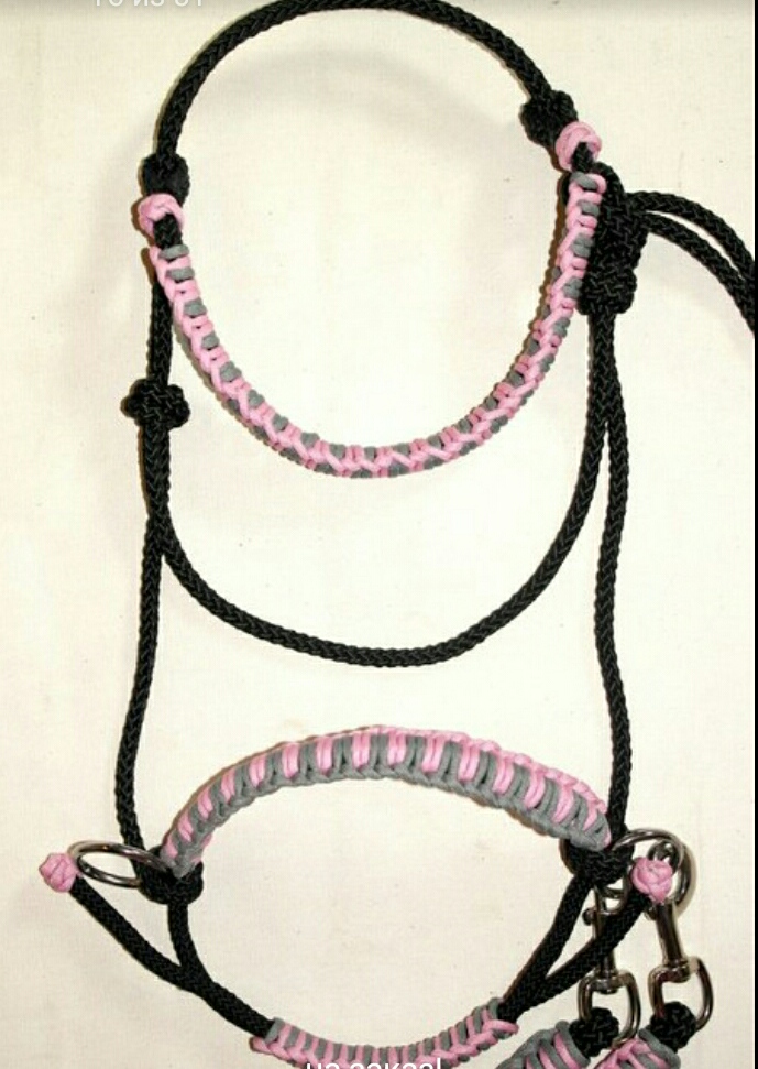 Модет кто знает или поможет советом, как эту прекрасную вещь сделать -сайт пулл и уздечка Кука)? Понятное дело что плетем в вначале как недоуздок, но вопрос- как подбородочный сделать у сайд пулла? И как у уздечки Кука нижние ремни сделать ?