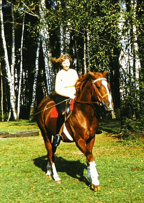 но проблема в том что то что на шагу являеться легким вкладыванием лошадиной тушки на ногу и вообщем то (для Бу подобрали повод и едем шагом =бежим рысью с башкой в небесах) фигуры выполняються правильно, но уже на предели сил всадника - тоесть всадник сидит терпит лошадиное вкладывание и молча давит давит давит ,лошадь со своей стороны в ответ давит и терпит