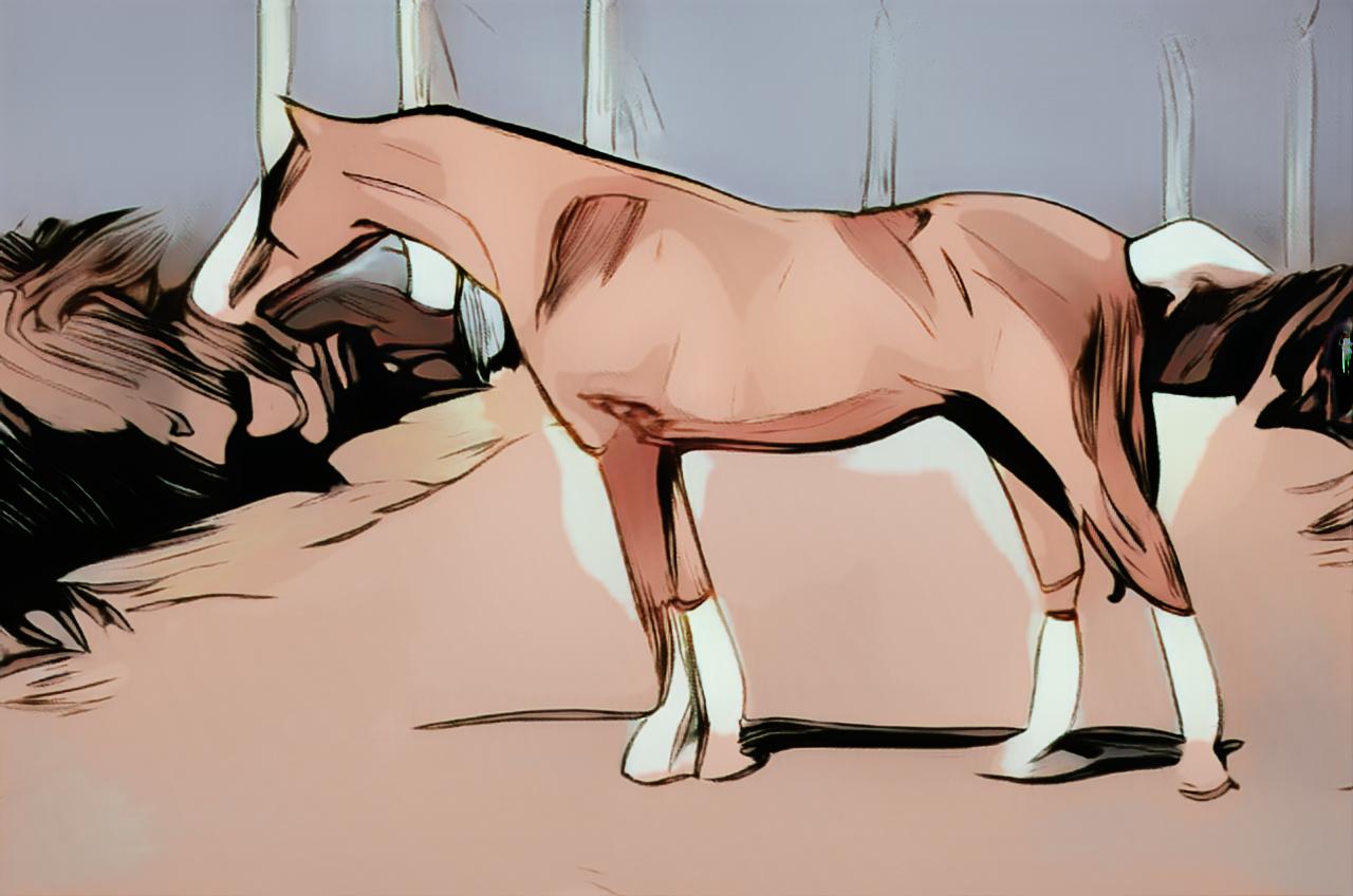 Отец Сани - прекрасный жеребец чистокровной верховой породы, работавший производителем в Кировском конном заводе и давший большое количество потомков в разных дисциплинах спорта: