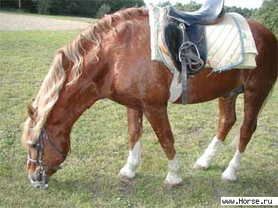 он был примерно мой ровесник, большой и толстый. он огрызался в деннике, ходил по ногам и ржал при виде кобыл.