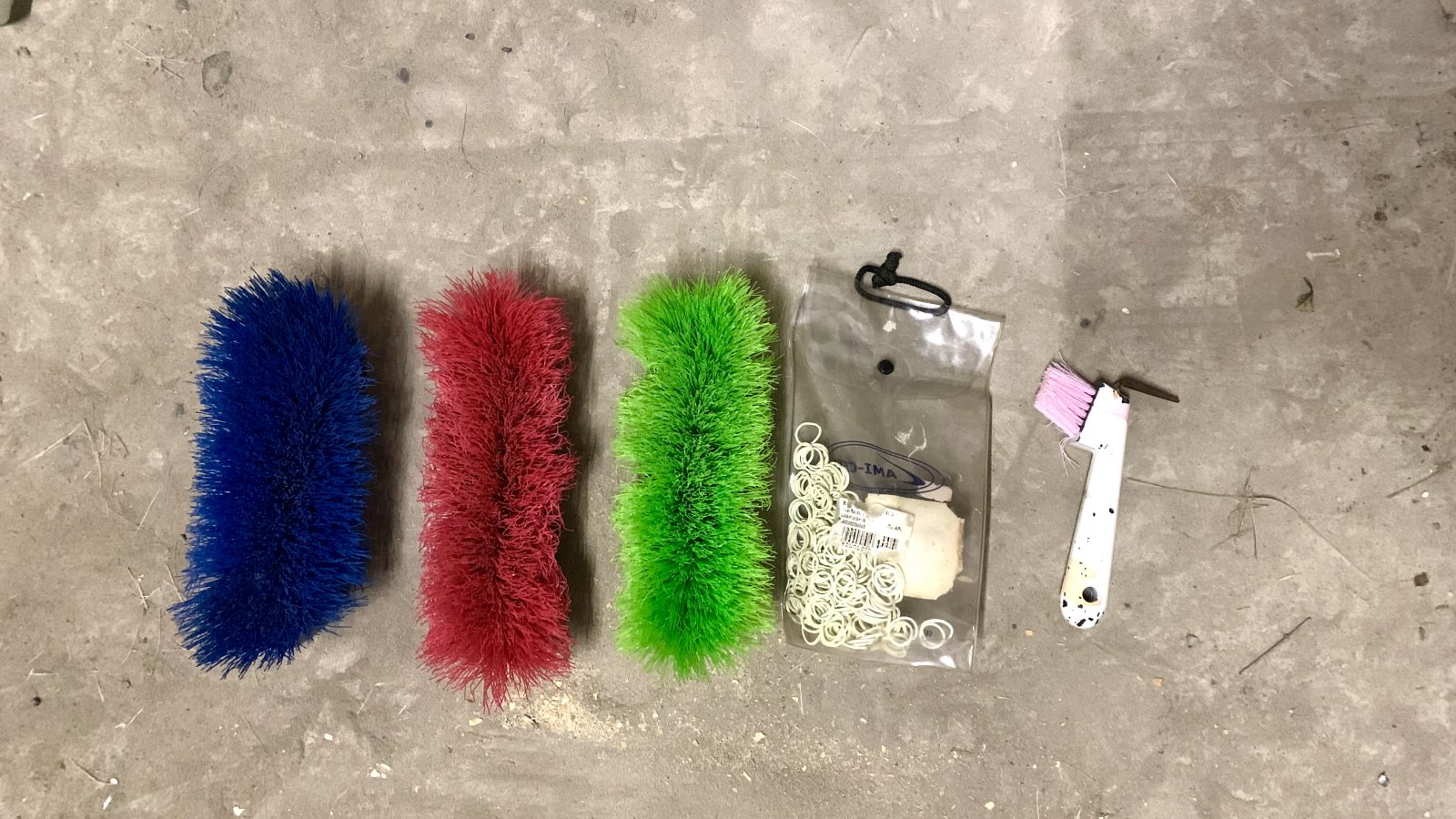 Три щетки, резинки для гривы и копытный крючок, все б/у в нормальном состоянии. Цена 1000р. за все.