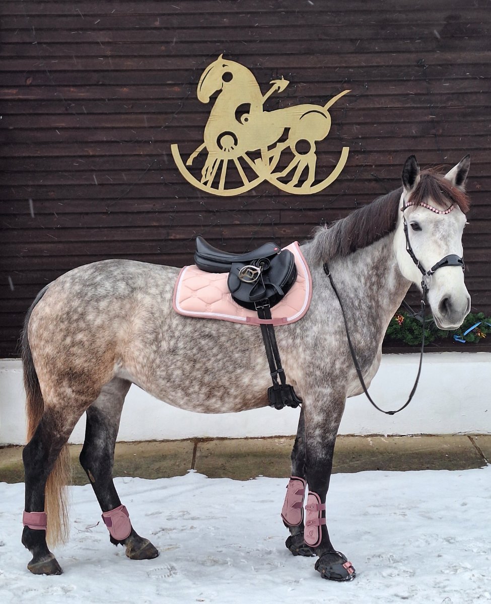 Лошадка у меня длинная по корпусу и плюс к этому полутяж, соответственно, мышцы по спине очень требовательные к комфорту, чуть что легко может провалить спину и в принципе раньше была не склонна мышцы спины включать и свою длинную спину поднимать. До этого бегала под сшитым на заказ конкурным седлом Карпиловича.