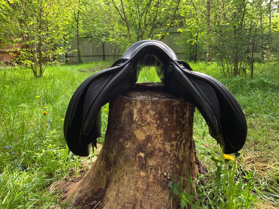 80000 р. Чёрное. Универсальный размер 17,5 подойдёт любому всаднику, даже высокому. Размер по лошади - 33. Очень комфортное для всадника, анатомическая форма для удобства лошади. Хорошо подходит на спину, как на фото. Devoucoux - одна из ведущих дорогих шорных фирм Европы. На их седлах выступает сборная Франции. Потрясающее качество.
