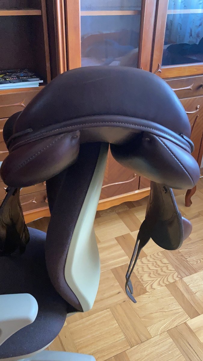 Бу около двух лет, с мая не пользуюсь. Красивый темно-коричневый цвет, удобные упоры. Хорошо ложится на сложные спины, высокие лопатки, короткие спины. По всаднику 17, по лошади нет размера тк ленчик гибкий. Примерка под полный залог, могу предоставить подпруги разного размера.
