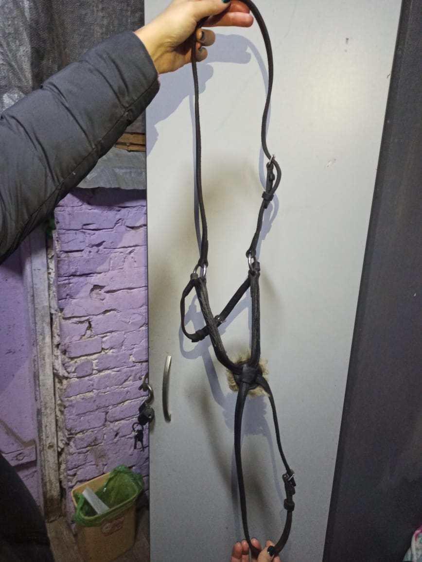 14. Уздечка с английским капсюлем, состояние рабочее. Без повода. Пряжки целые, вся фурнитура на месте, размер коб. Дефект мягкой подложки на капсюле, на работу не влияет. Цена 1300.