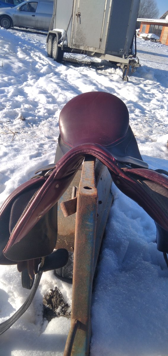 Шикарная вишнёвая кожа, удобные упоры, глубокая посадка. Для прыжков до метра. Канал три пальца. Ленчик целый, промазывалось регулярно. Размер по всаднику 16-16,5. На среднюю лошадь с невысокой холкой.