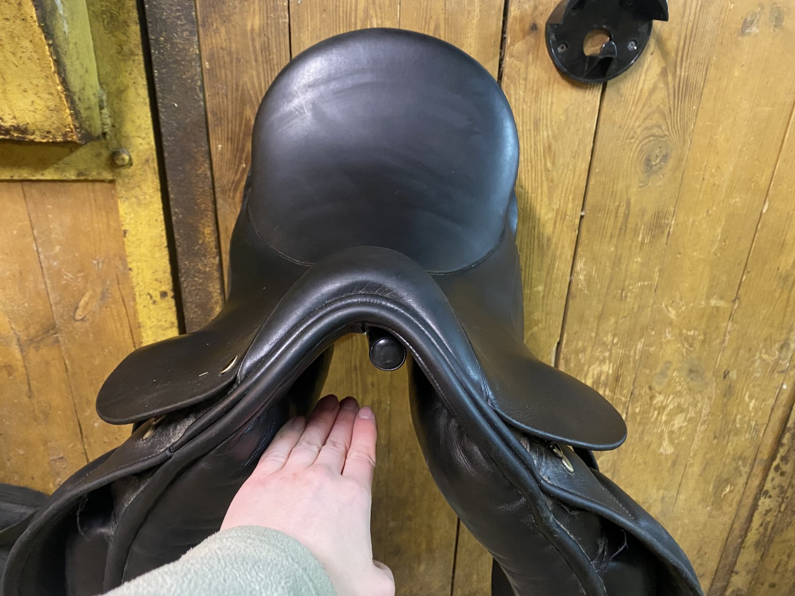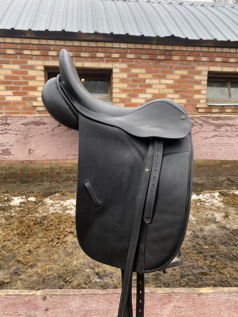 широкое, выездка. Широкий канал канал между подушками, больше 4 пальцев под задней лукой, спереди больше, легкое. Все косметические дефекты видны на фото. Хранится в чехле, регулярно проматывается. Седло удобное, хорошо сажает.