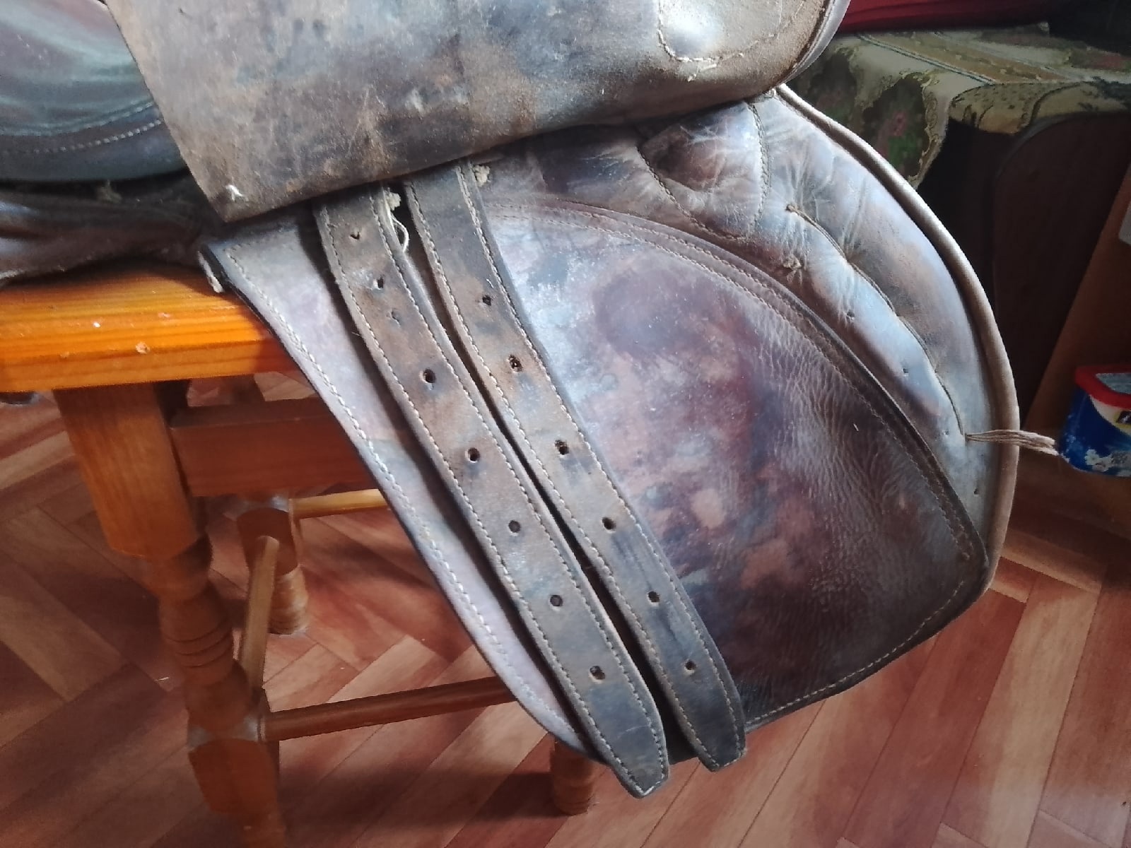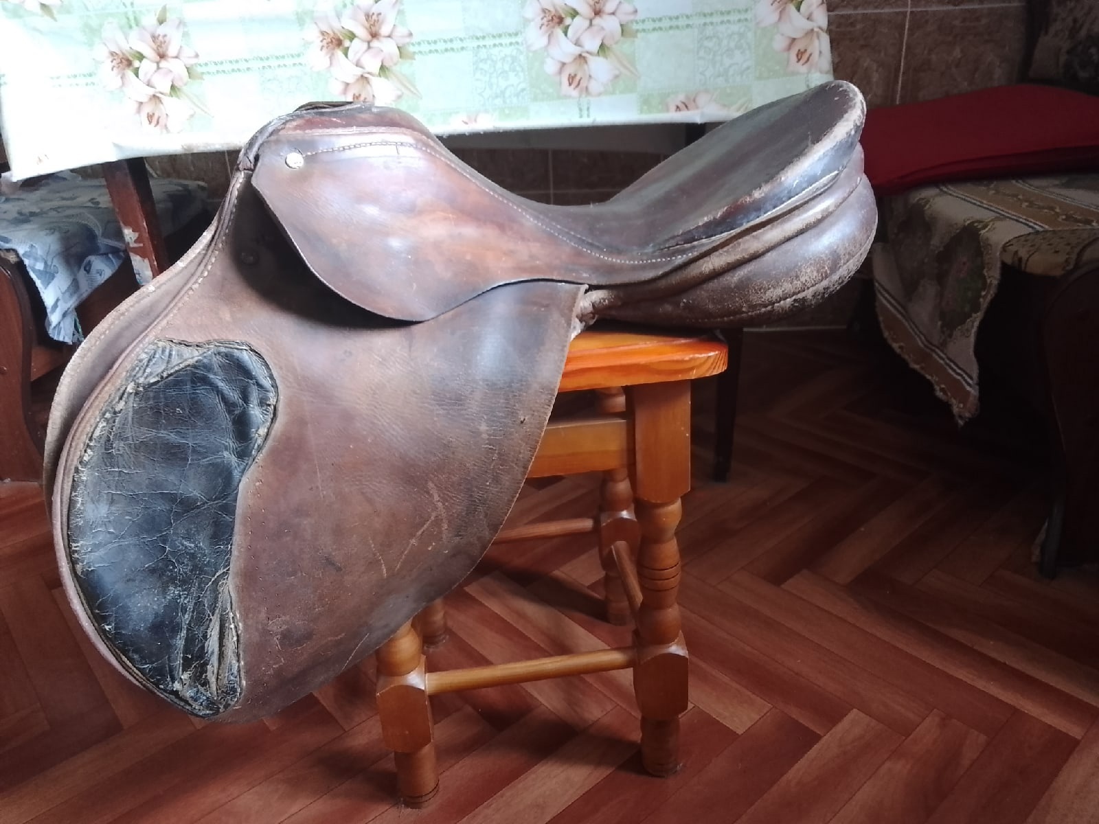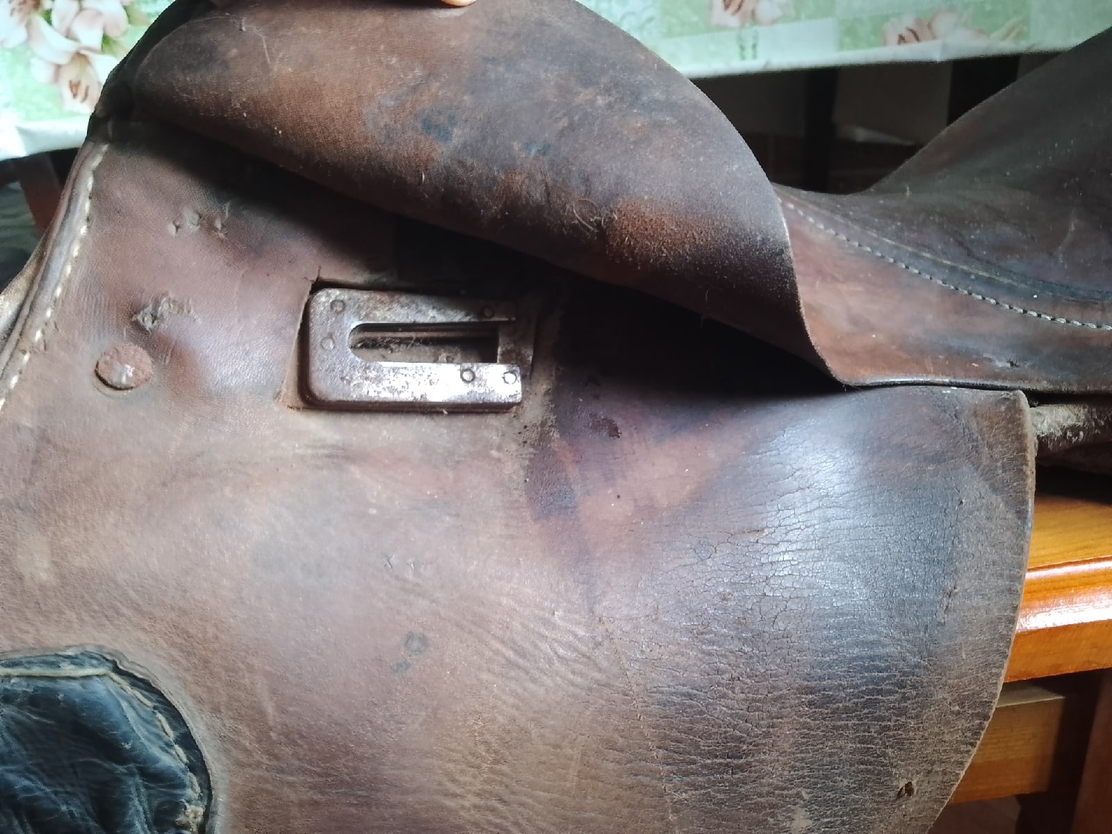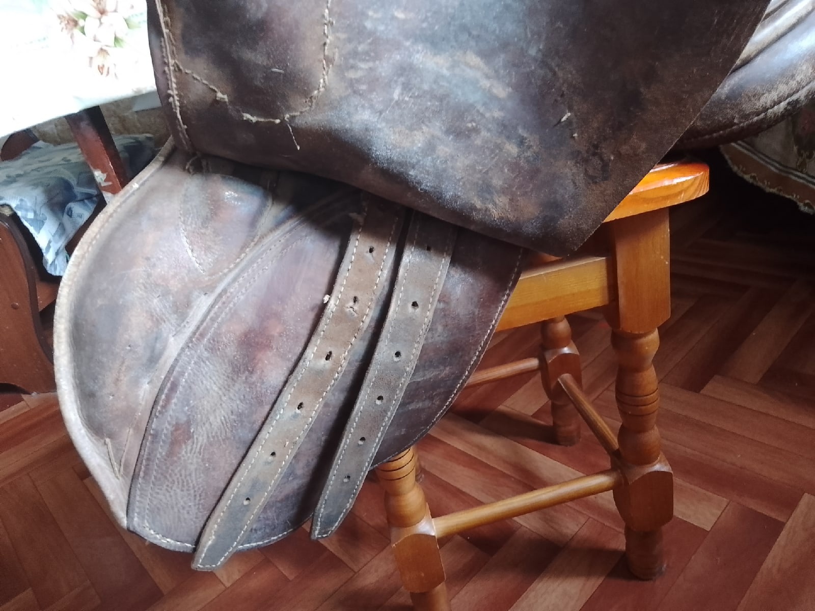 Седло старенькое, каркас целый, замки целые.