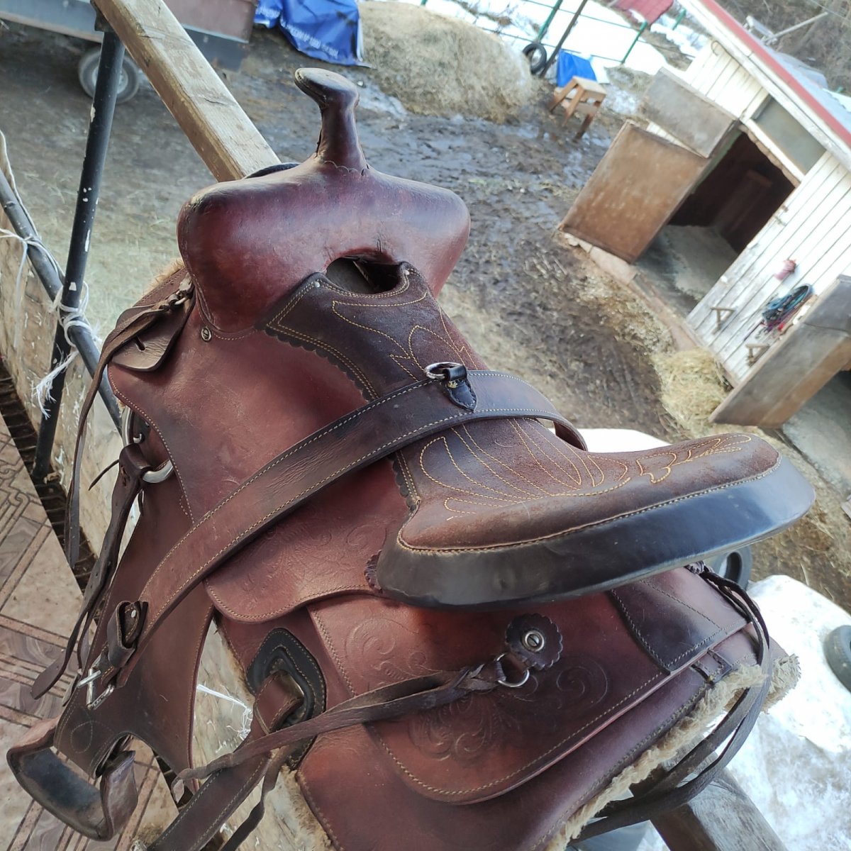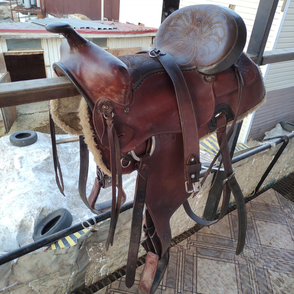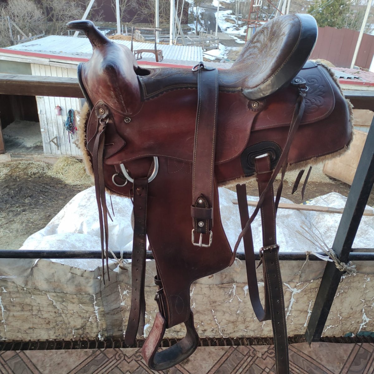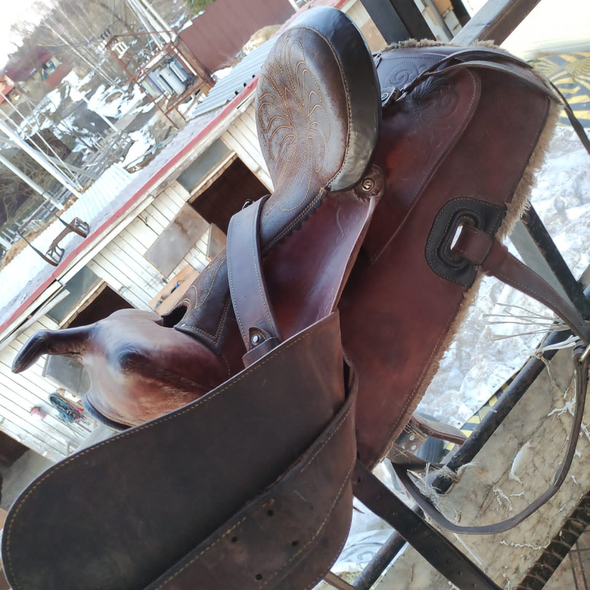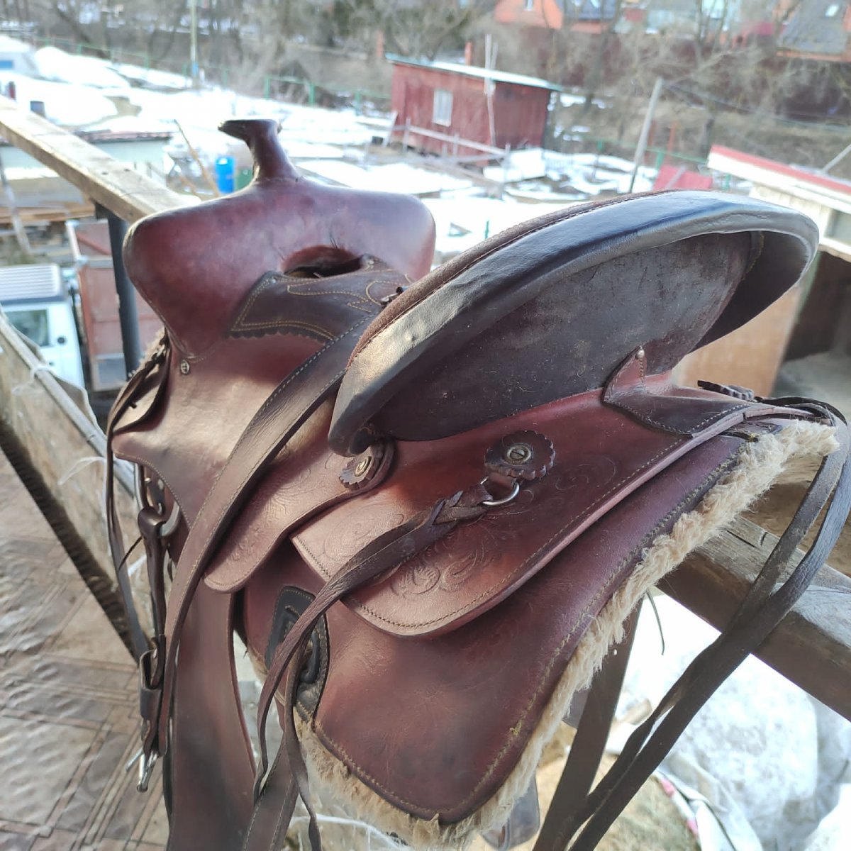 Продам седло ковбойское (вестерн). Размер по всаднику 16, промазано, целое, в сборе. 50000 руб, торг возможен. Нужные размеры, если необходимо, сниму