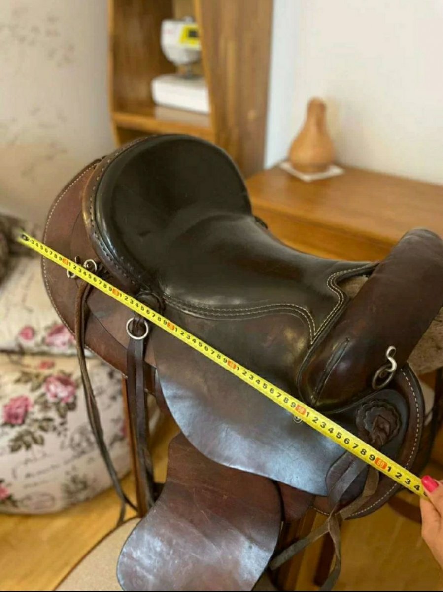 ?По всаднику 15 вестерновый (попы до 48-50 размера и меньше). Стремена на рост 165+, но можно пробить дополнительные до роста 160.